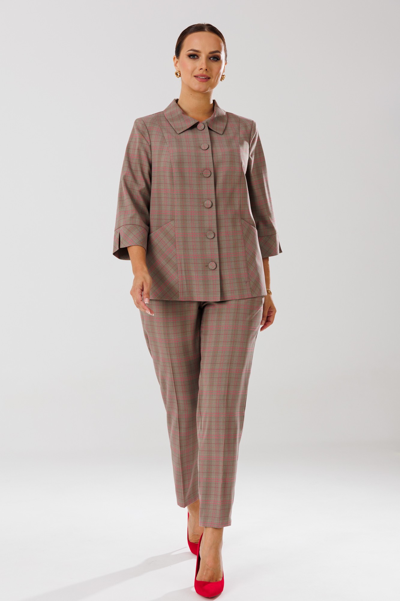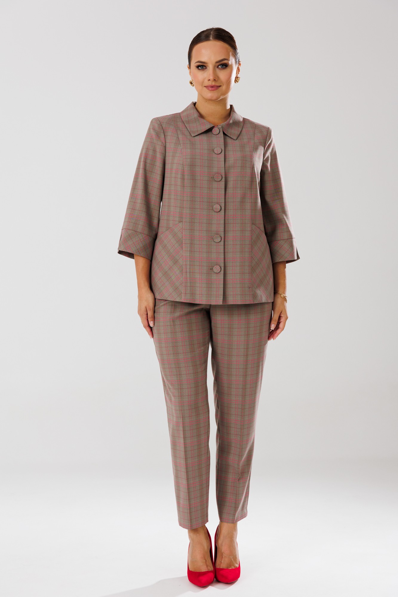 Брючный костюм Мублиз плюс 197 кофейный, красная клетка с ID товара 412898