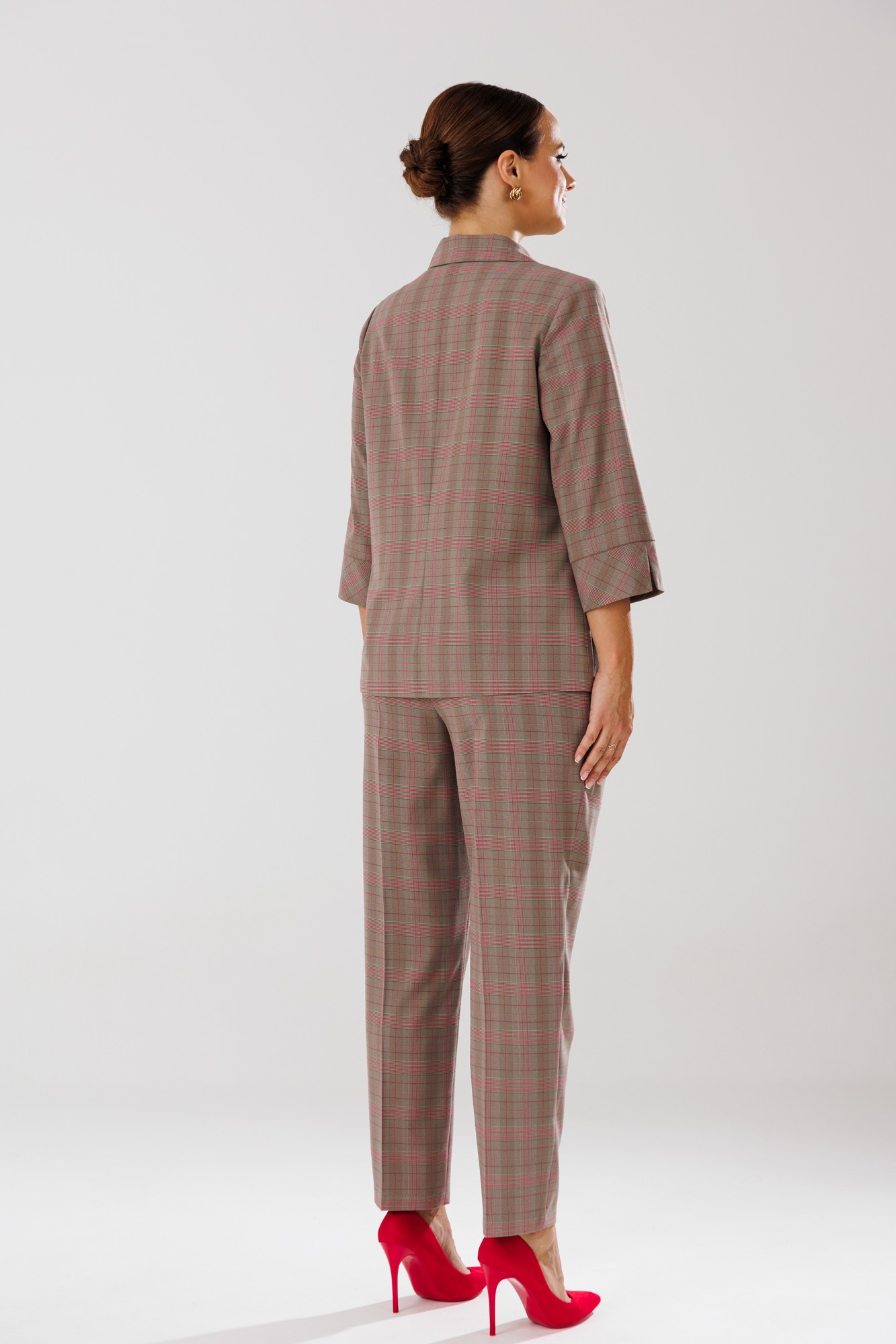Брючный костюм Мублиз плюс 197 кофейный, красная клетка с ID товара 415353