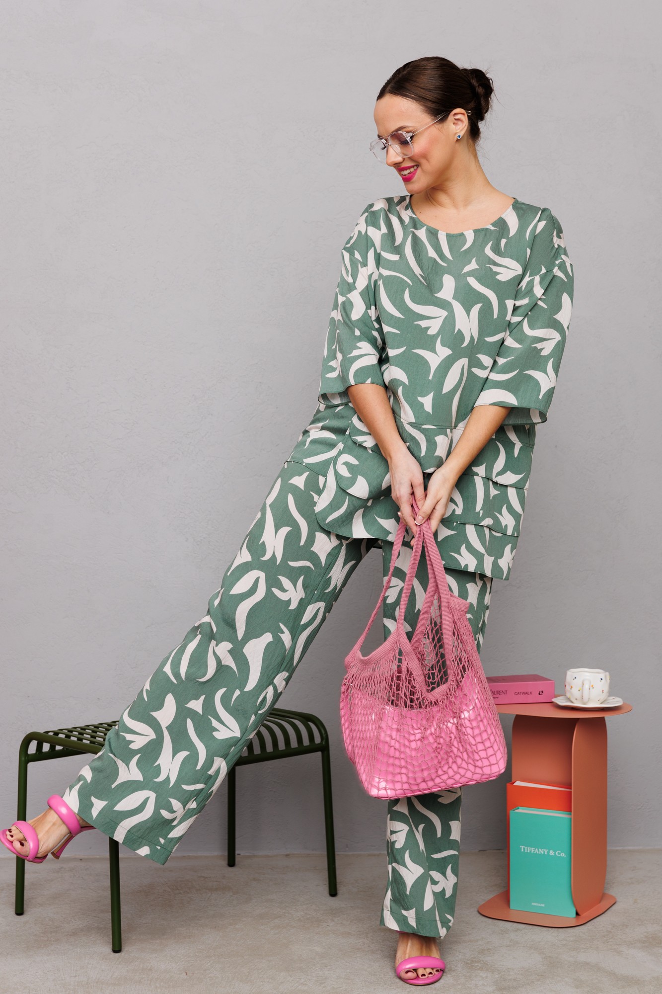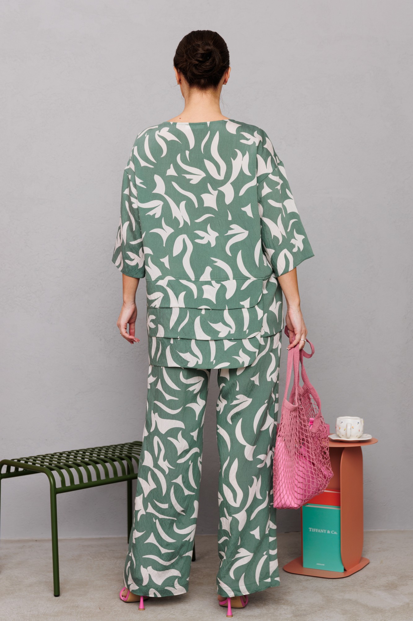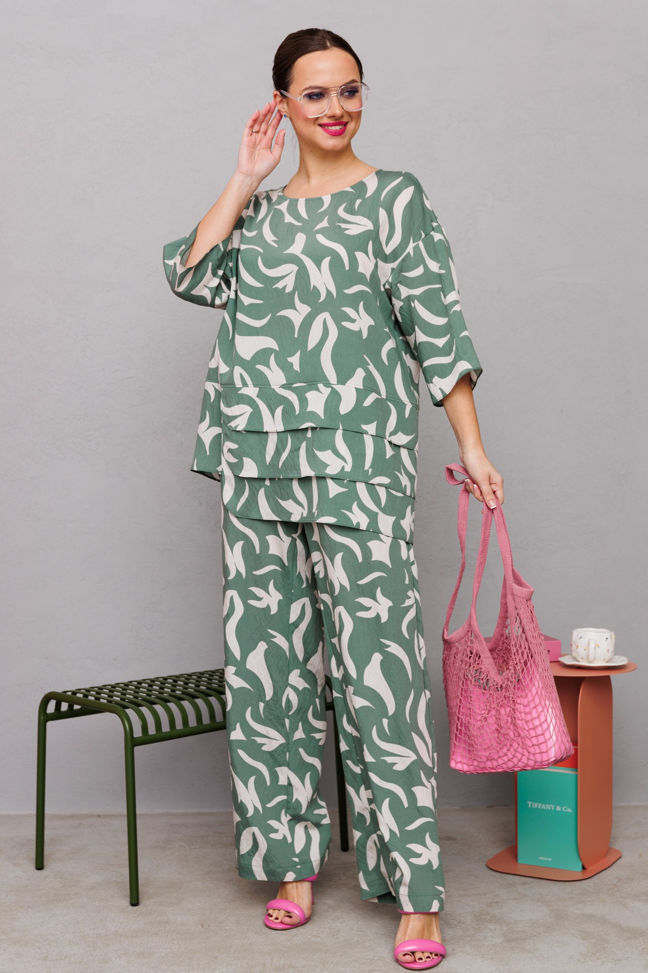 Брючный костюм Мублиз плюс 245 бело-зеленый