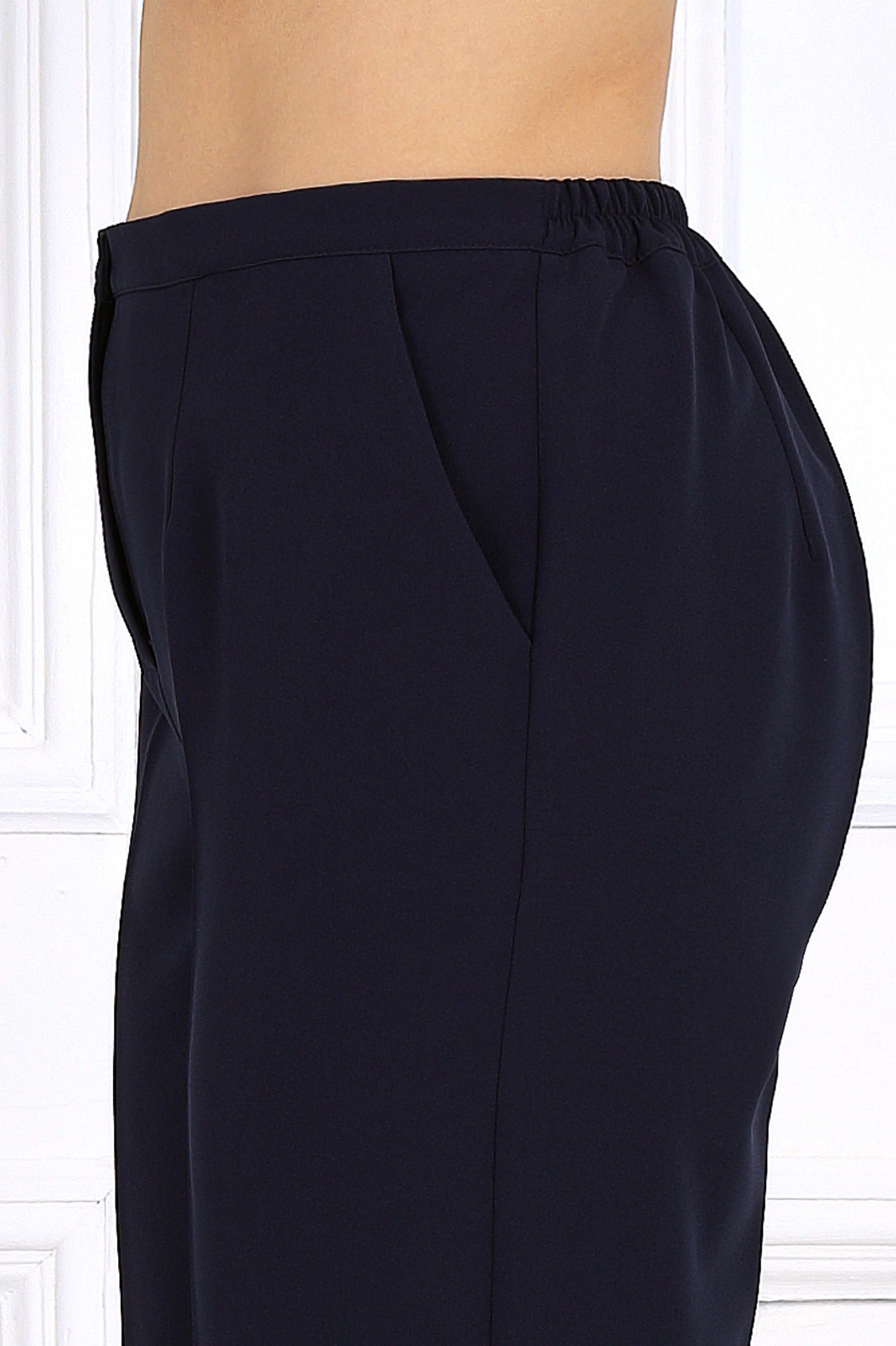 Элегантный брючный костюм – идеальный выбор для вечернего выхода, торжества или особого случая. Легкая шифоновая туника с асимметричным кроем и струящимися рукавами добавляет образу воздушности и утонченности. Удлиненная спинка делает силуэт элегантным и зрительно вытягивает фигуру. Прямые классические брюки из костюмной ткани великолепно садятся по фигуре, обеспечивая комфорт на протяжении всего дня. Идеально подойдет для вечернего выхода, праздников и торжественных мероприятий. Легкий и женственный образ для любого типа фигуры. Комплект брючный 2-х предметный, состоящий из туники и брюк. Туника А-образного силуэта, выполнена из шифона. Модель без подкладки и застежки, с плечевыми накладками. Низ туники асимметричной формы: укороченный спереди и удлиненный к центру спинки. Перед и спинка состоят из двух разных по длине слоев: верхний спереди короче нижнего на 4 см, а по спинке на 16 см. Горловина переда и спинки округлая, по переду слегка углубленная. Рукав, втачной, расширенный, с фигурным низом. Длина туники (по середине спинки) – 118 см (46-50 р-р), 119 см (52-60 р-р); длина рукава – 41 см (46-50 р-р), 42 см (52-60 р-р). Брюки классические длинные, прямого силуэта, с посадкой на талии, выполнены из костюмно-плательного ткани. Модель с центральной застёжкой на тесьму-«молнию», на притачном поясе, застегивающемся на петлю и пуговицу. Передние и задние половинки брюк с таллиевыми вытачками, направленными от пояса вниз. Спереди обработаны боковые наклонные карманы. Для лучшего прилегания брюк в области талии в поясе, по задним половинкам вставлена эластичная лента. Длина брюк по боковому (с поясом) – 107 см (46-50 р-р.), 108 см (52-54 р-р), 109 см (56-60 р-р).