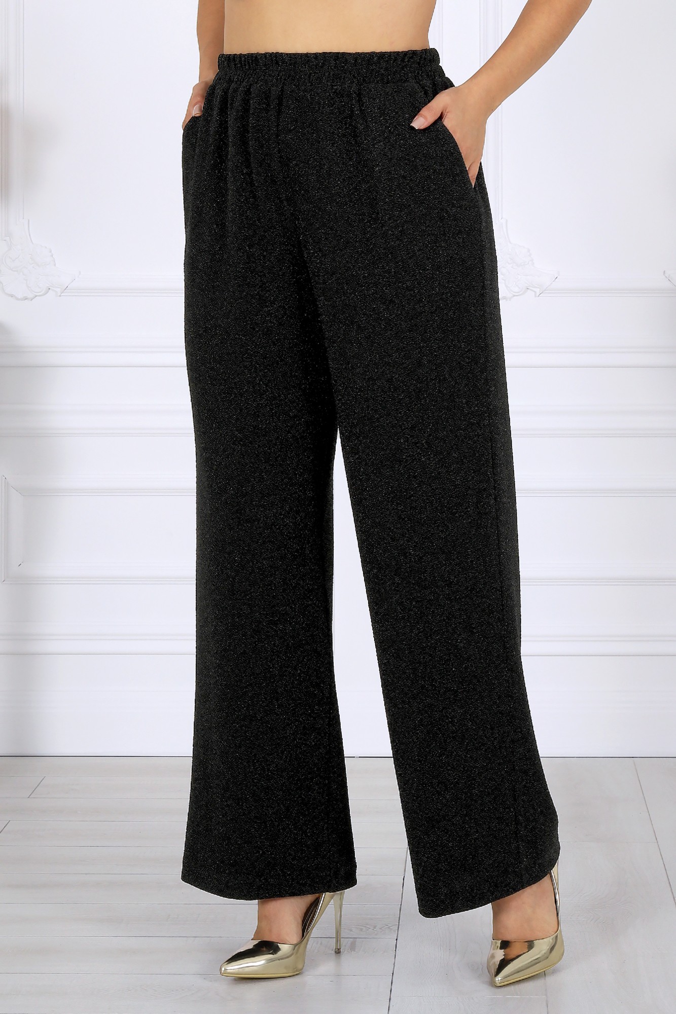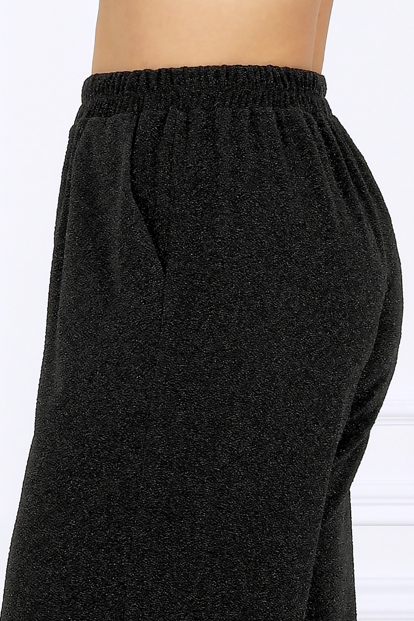 Это не просто наряд — это ваша уверенность, статус и блеск, который будет сопровождать каждый ваш шаг. В этом костюме каждая деталь продумана так, чтобы создавать ощущение безупречного стиля и лёгкой роскоши. Мягкое мерцание люрекса делает образ выразительным и дорогим, а утончённый крой подчёркивает женственность и гармонию силуэта. Блузка с асимметричной деталью по линии талии — это модный акцент, который визуально формирует стройный силуэт и придаёт образу дизайнерскую изысканность. Нежная линия декольте в обрамлении округлой горловины элегантно подчёркивает женственность. Брюки прямого силуэта с комфортной посадкой — символ утончённой простоты и свободы. Эластичный пояс обеспечивает удобство, а мерцающая фактура ткани делает их достойным элементом вечернего гардероба. Такой костюм создан для особых случаев: новогодних вечеров, корпоратива, праздничного ужина или выхода в свет, но при этом он настолько универсален, что легко впишется и в деловой стиль. Комплект брючный 2-х предметный, состоящий из блузки и брюк. Блузка полуприлегающего силуэта, выполнена из трикотажного полотна с фактурной лицевой стороной «люрекс». Модель без подкладки, с плечевыми накладками. Спинка с таллиевыми вытачками и средним швом. По линии талии в левой части переда – горизонтальный подрез с односторонними складками и отлетной деталью в шве. По линии талии в правой части переда обработан цельнокроеный пояс, край которого крепится в левом боковом шве. Горловина округлая, углубленная спереди. Рукав длинный, втачной. Длина блузки – 62 см. Длина рукава – 57 см. Брюки длинные, с посадкой на талии, выполнены из трикотажного полотна с фактурной лицевой стороной «люрекс». Модель без стрелок, без застежки. Спереди обработаны наклонные боковые карманы. Для лучшего прилегания по линии талии в притачном поясе предусмотрена эластичная лента, вставленная по всей длине. Длина брюк по боковому (с поясом) – 106 см (50-52 р-р), 107 см (54-58 р-р).