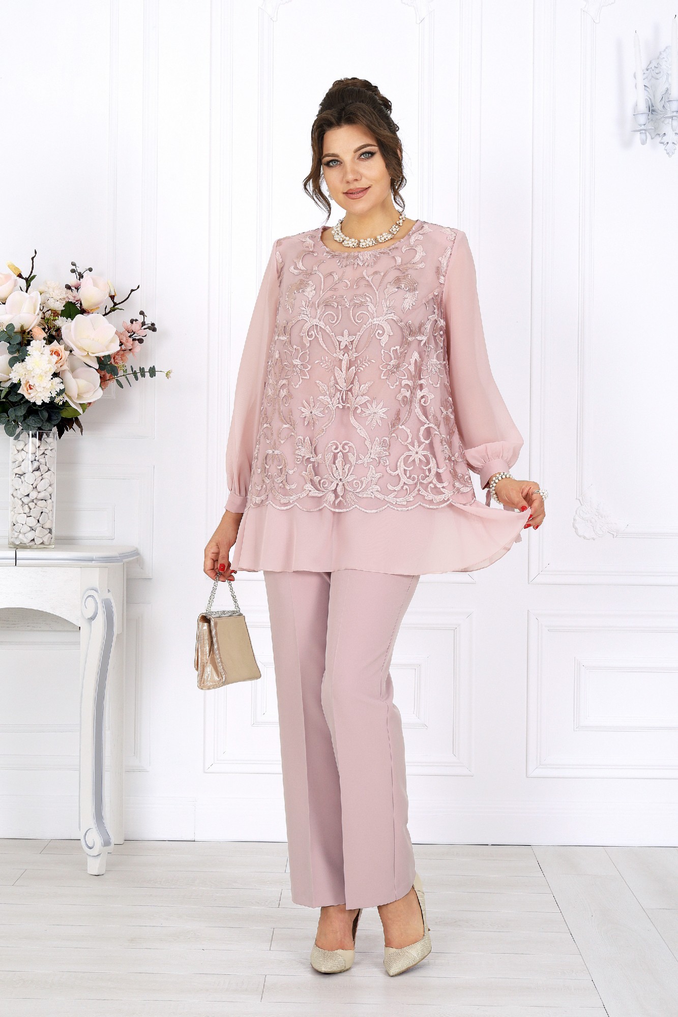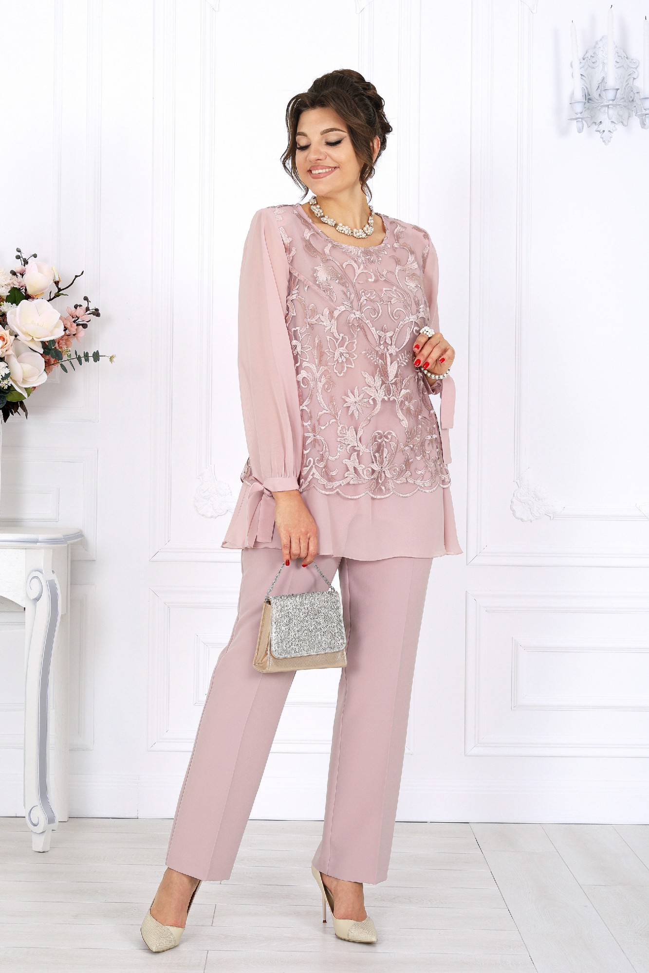 Брючный костюм NINELE 6080 пудра