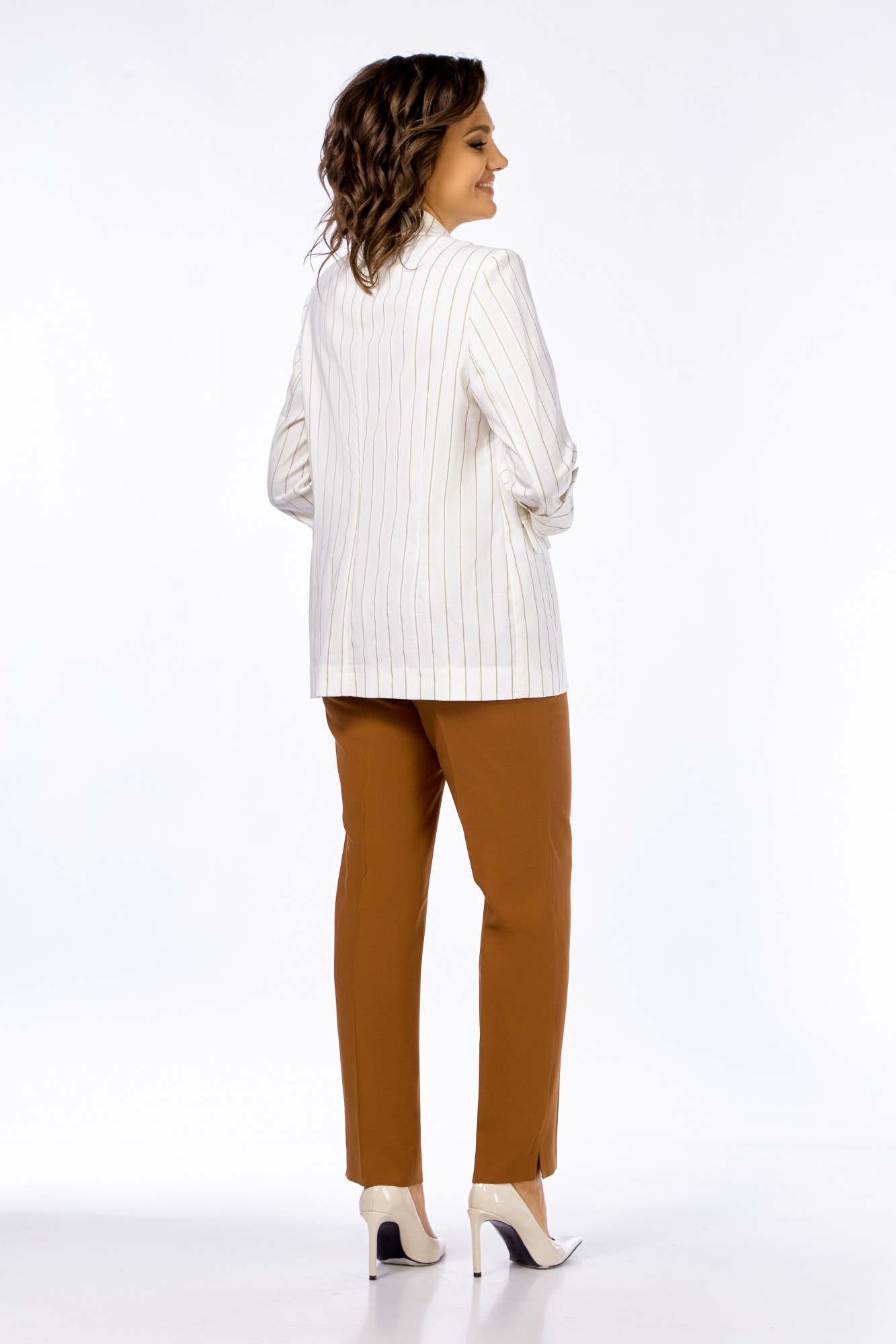 Брючный костюм Ольга Стиль С919 полоска, охра