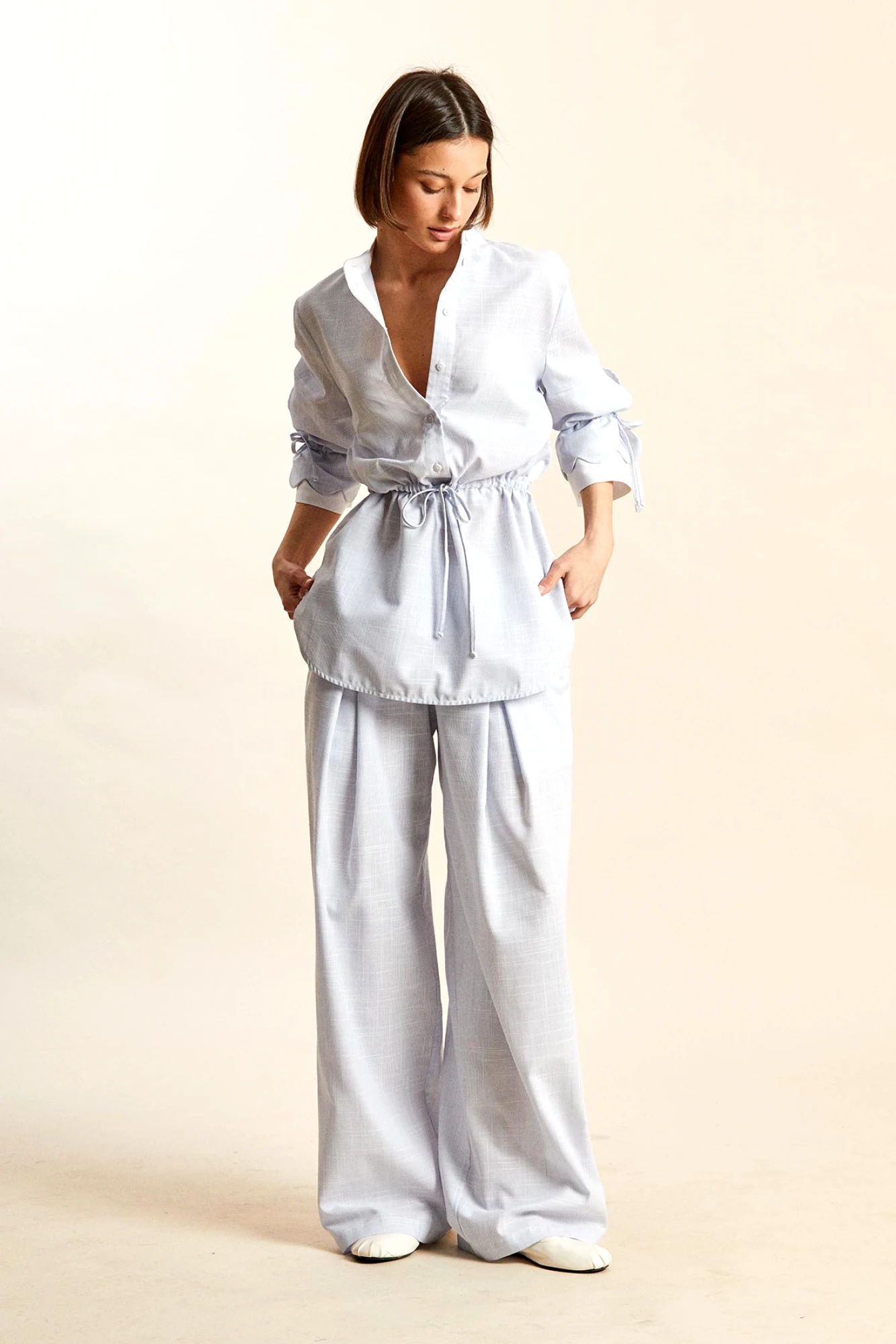 Брючный костюм RIVOLI 9040 бело-голубой