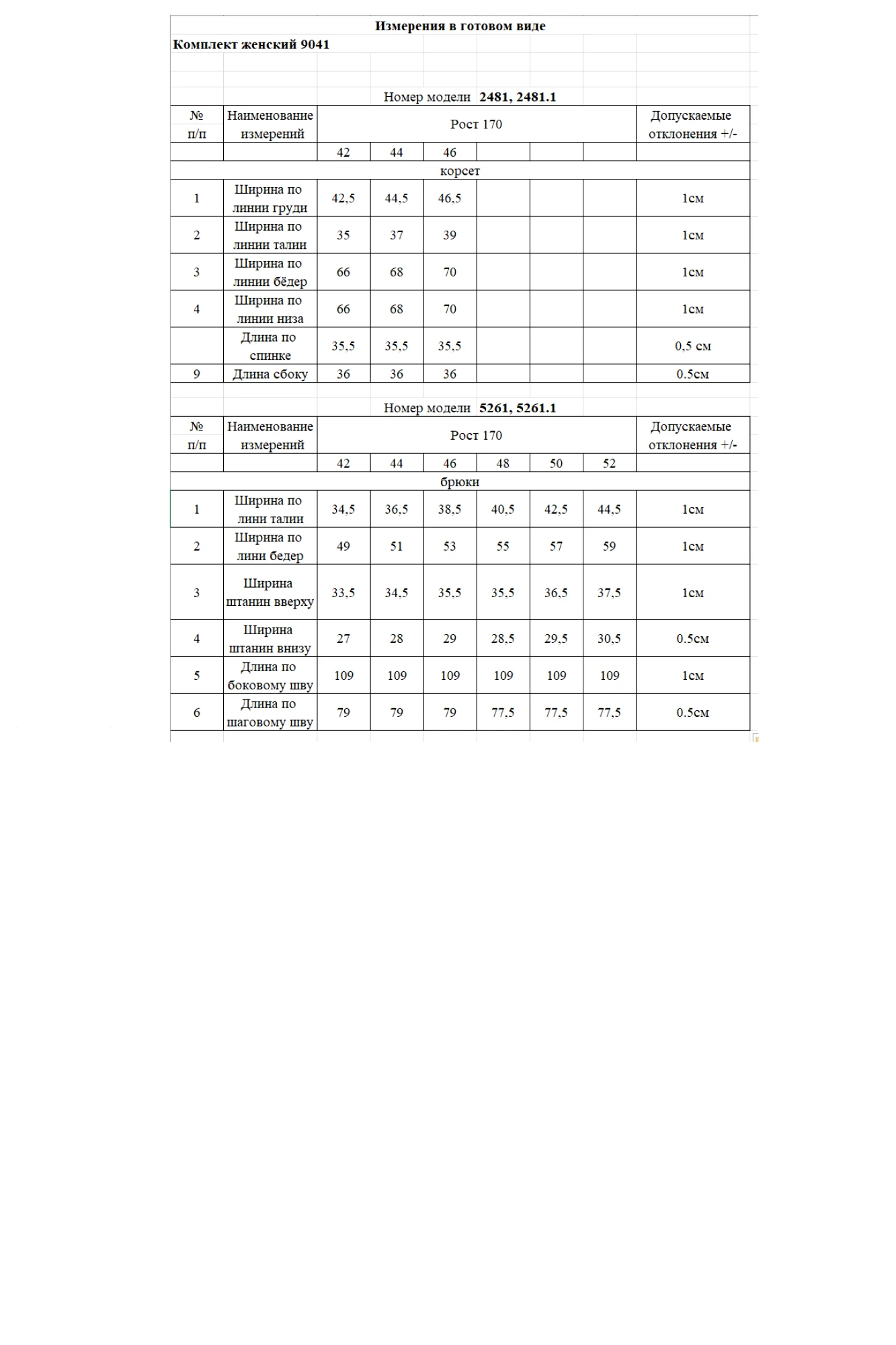 Таблица размеров