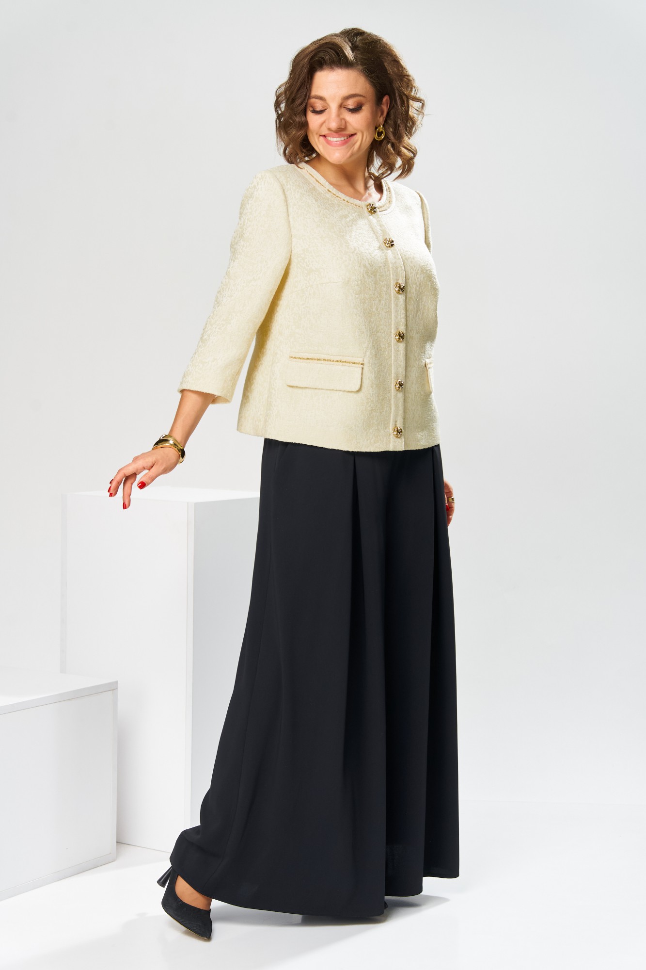 Длина спинки жакета 58 см, длина рукава 48 см. Длина брюк по боковому срезу 99 см.