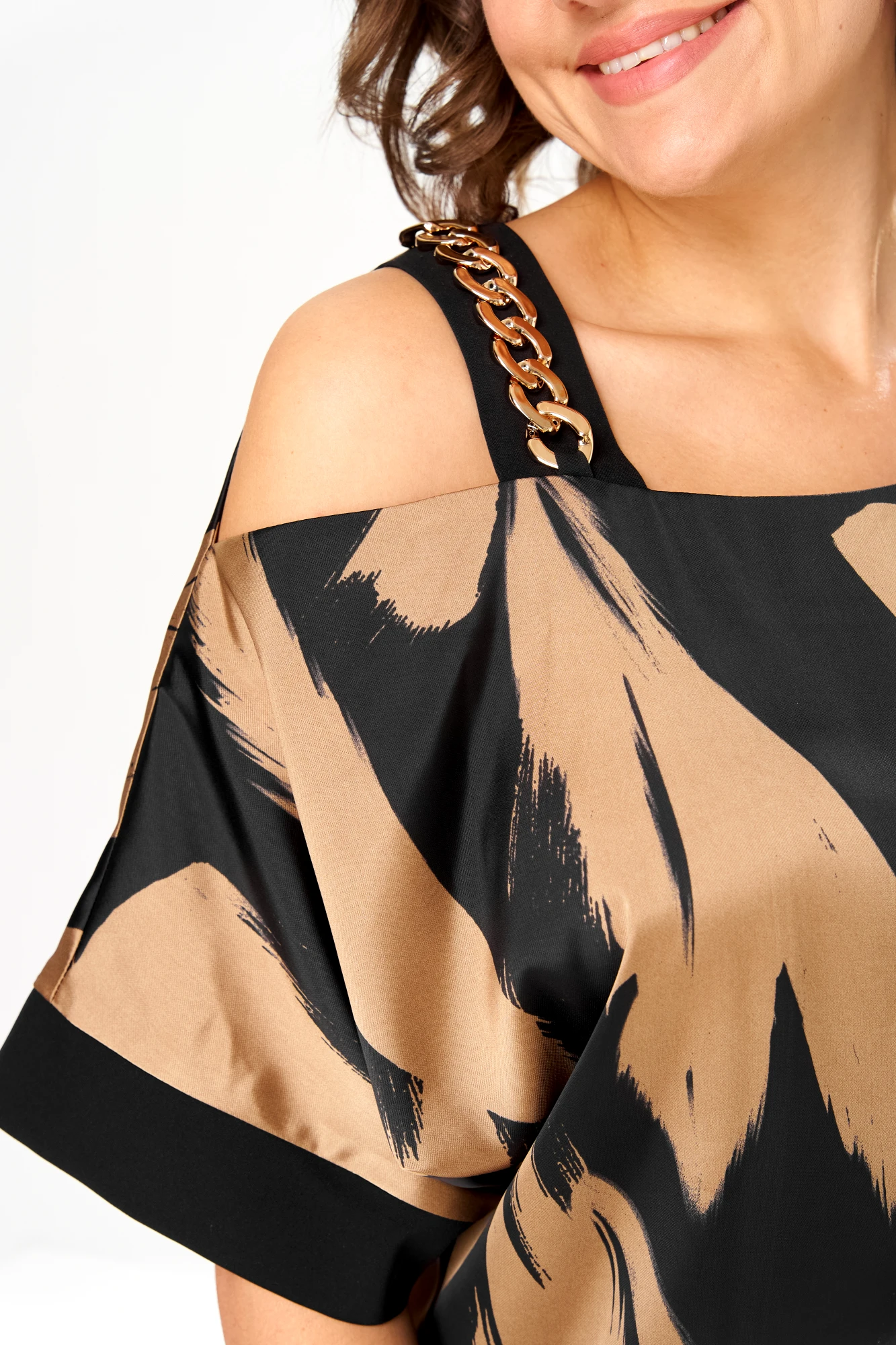 Брючный костюм Romanovich Style 2-2884 двойка черный с коричневым