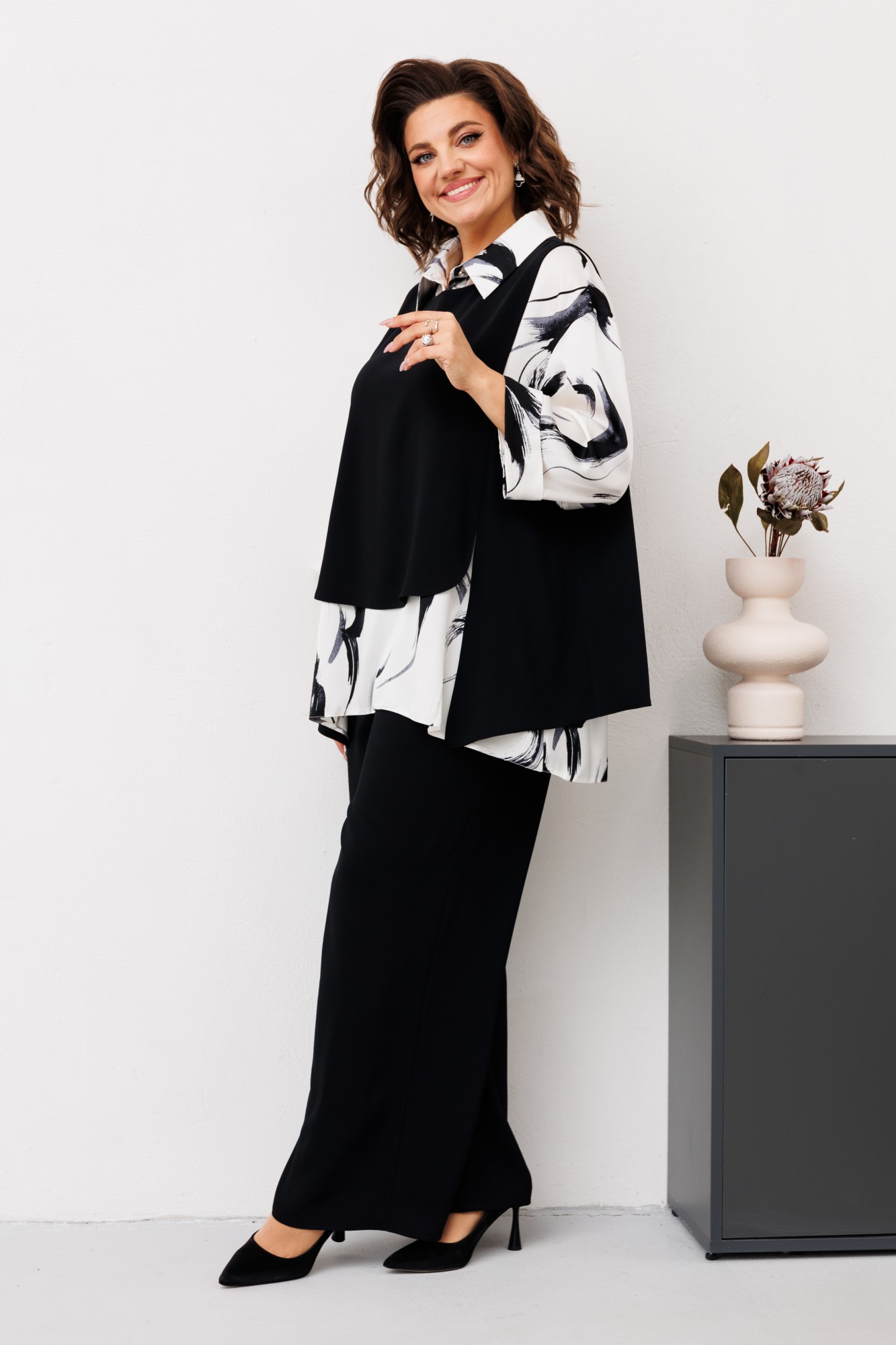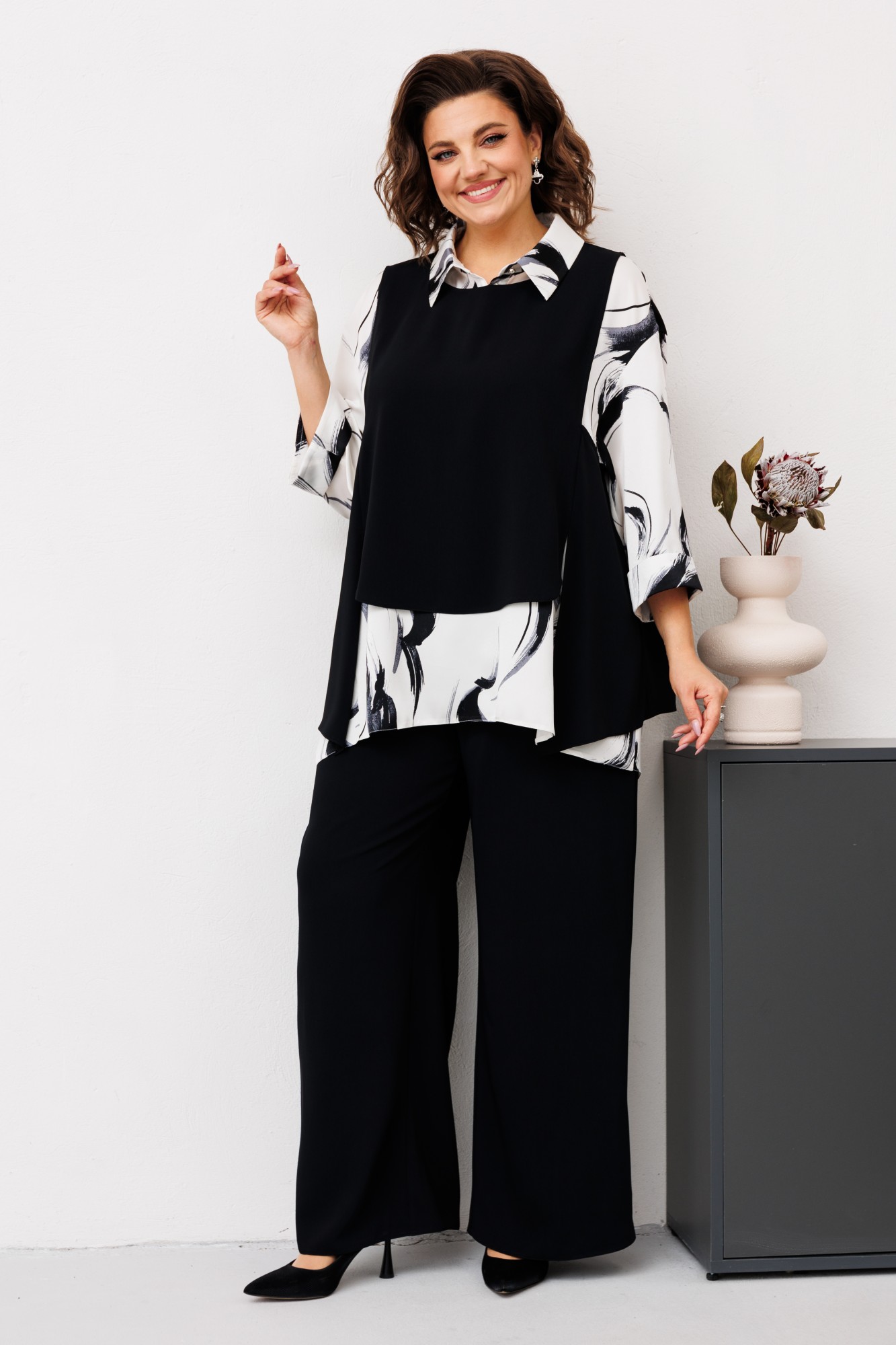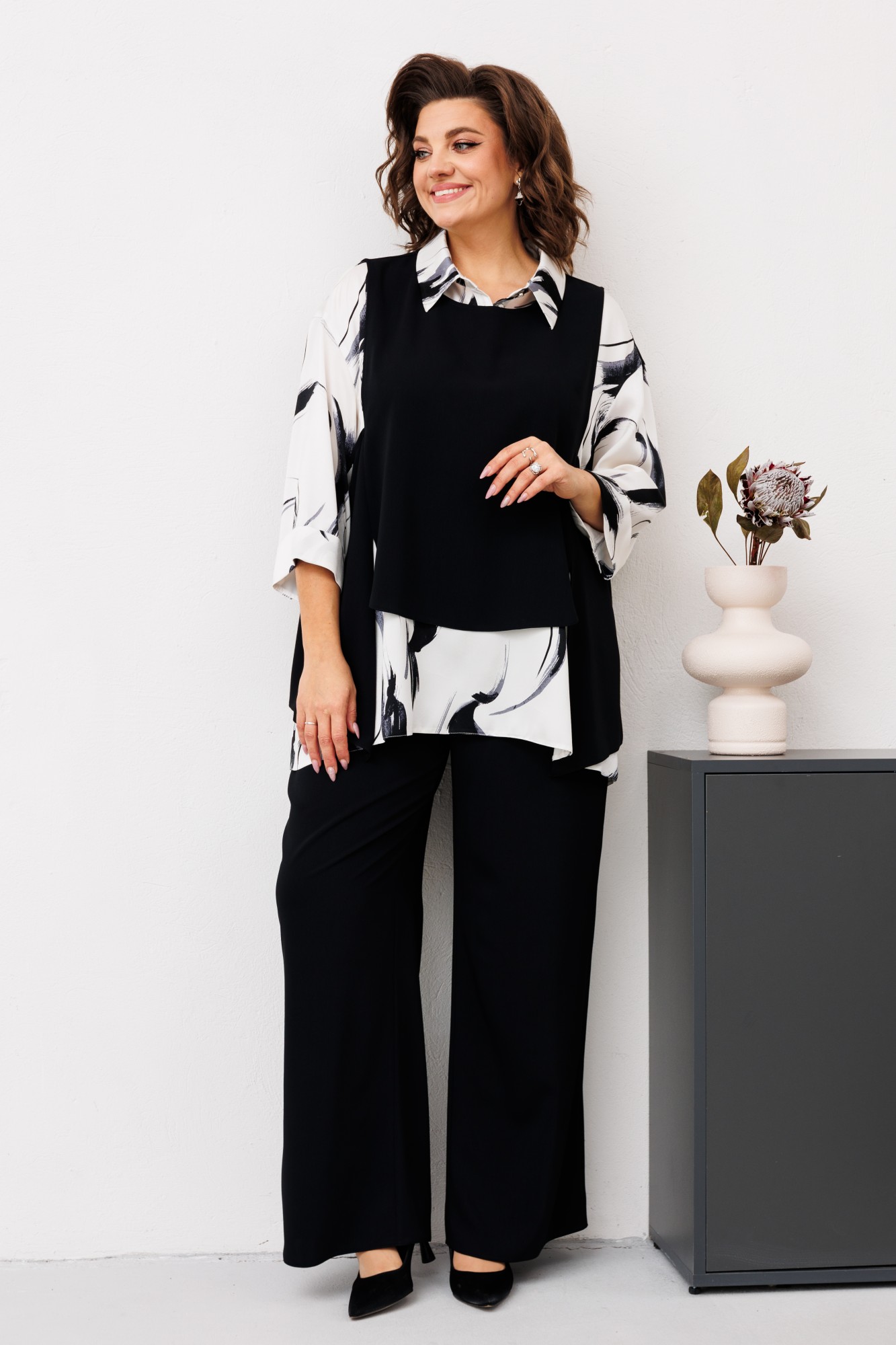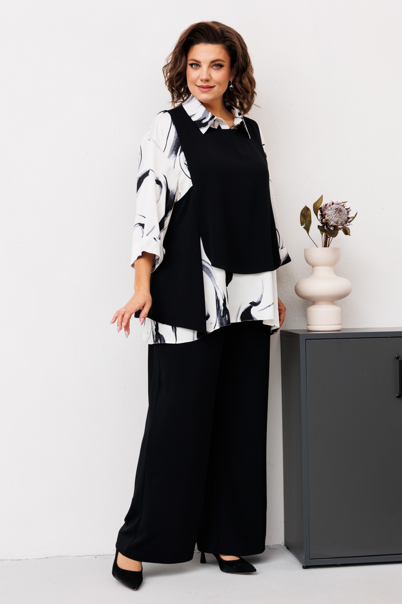Брючный костюм Romanovich Style 3-2510 тройка черно-белый с ID товара 405832