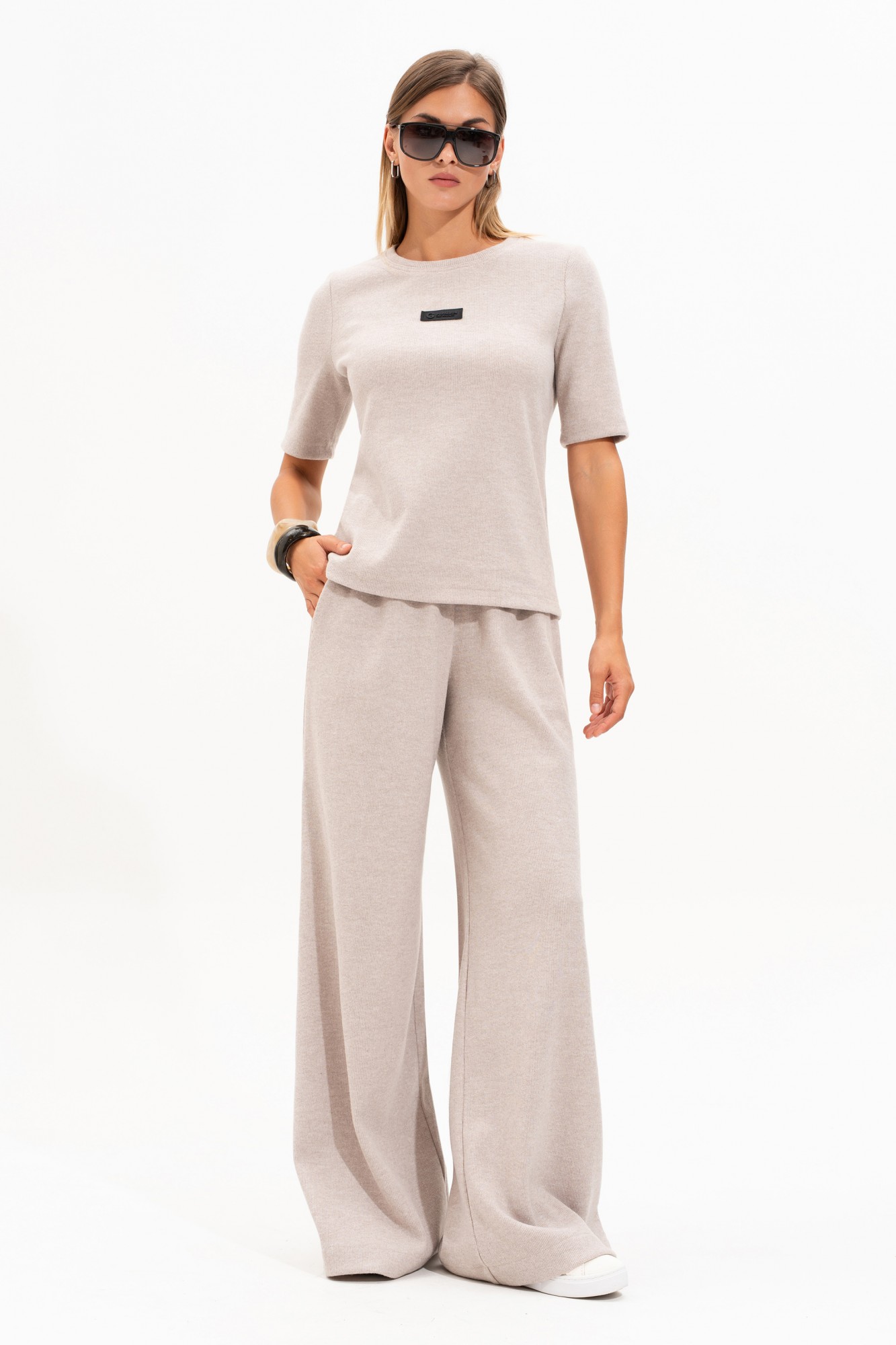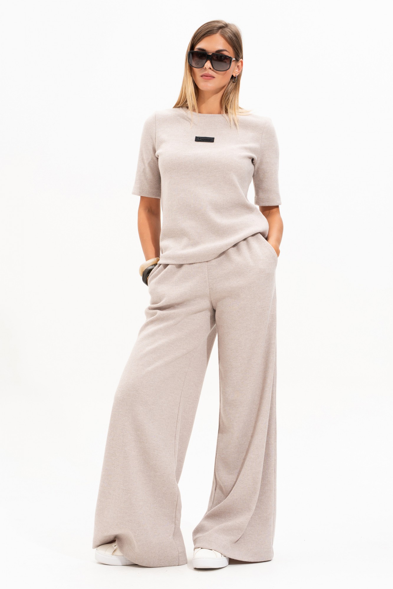Комплект брючный. Джемпер - легкая модель из мягкого трикотажного полотна, с коротким рукавом. На полочке декор в виде нашивки с лого. Горловина оформлена бейкой из основного полотна.