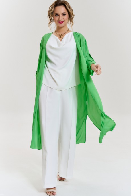 Брючный костюм SOVA 11221 тройка белый, зеленый