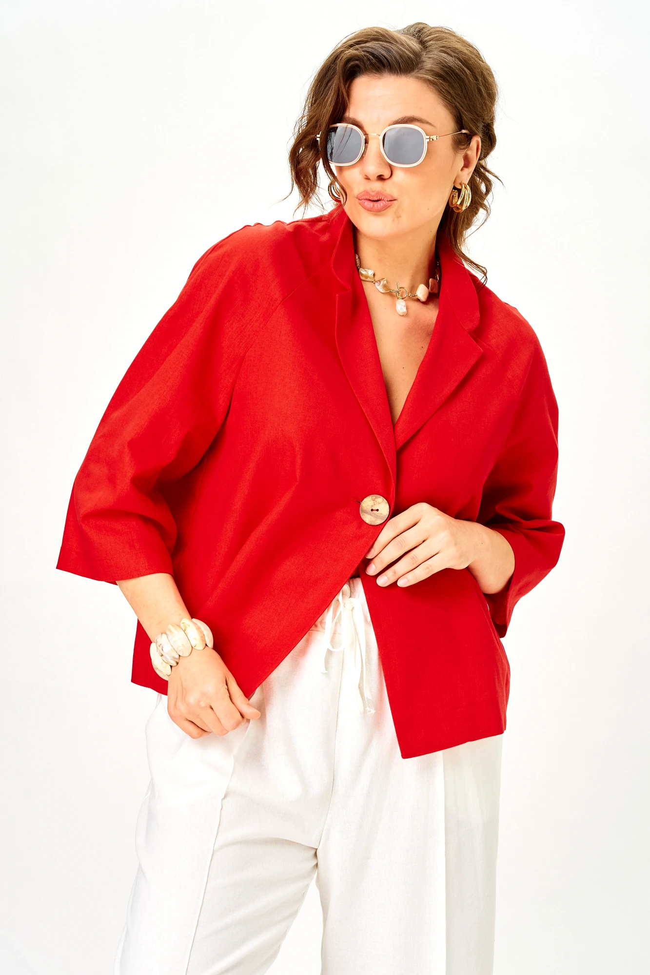 Брючный костюм SOVA 11333 красно-молочный