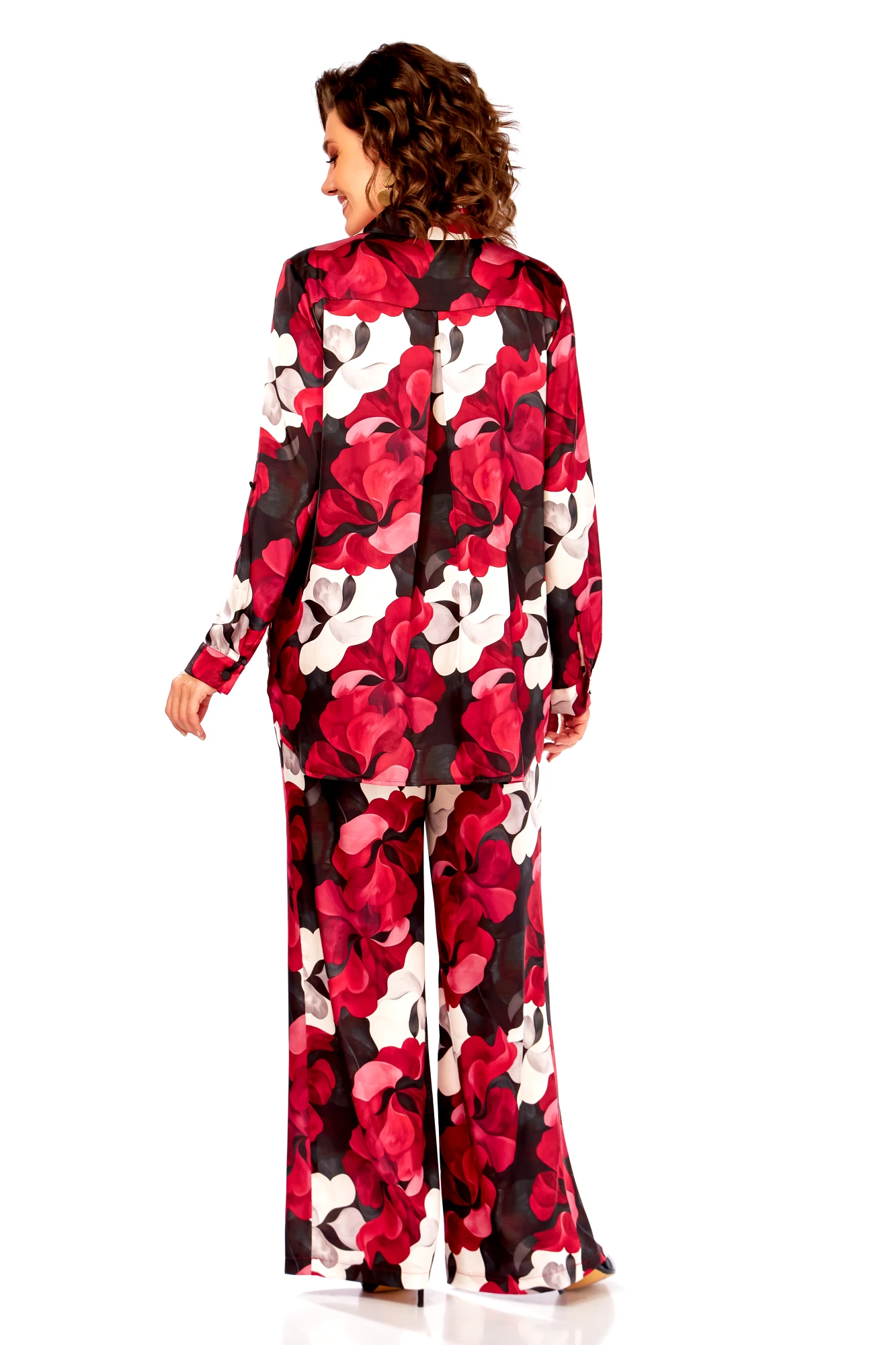 Брючный костюм Swallow 893 двойка бордово-бежевые цветы