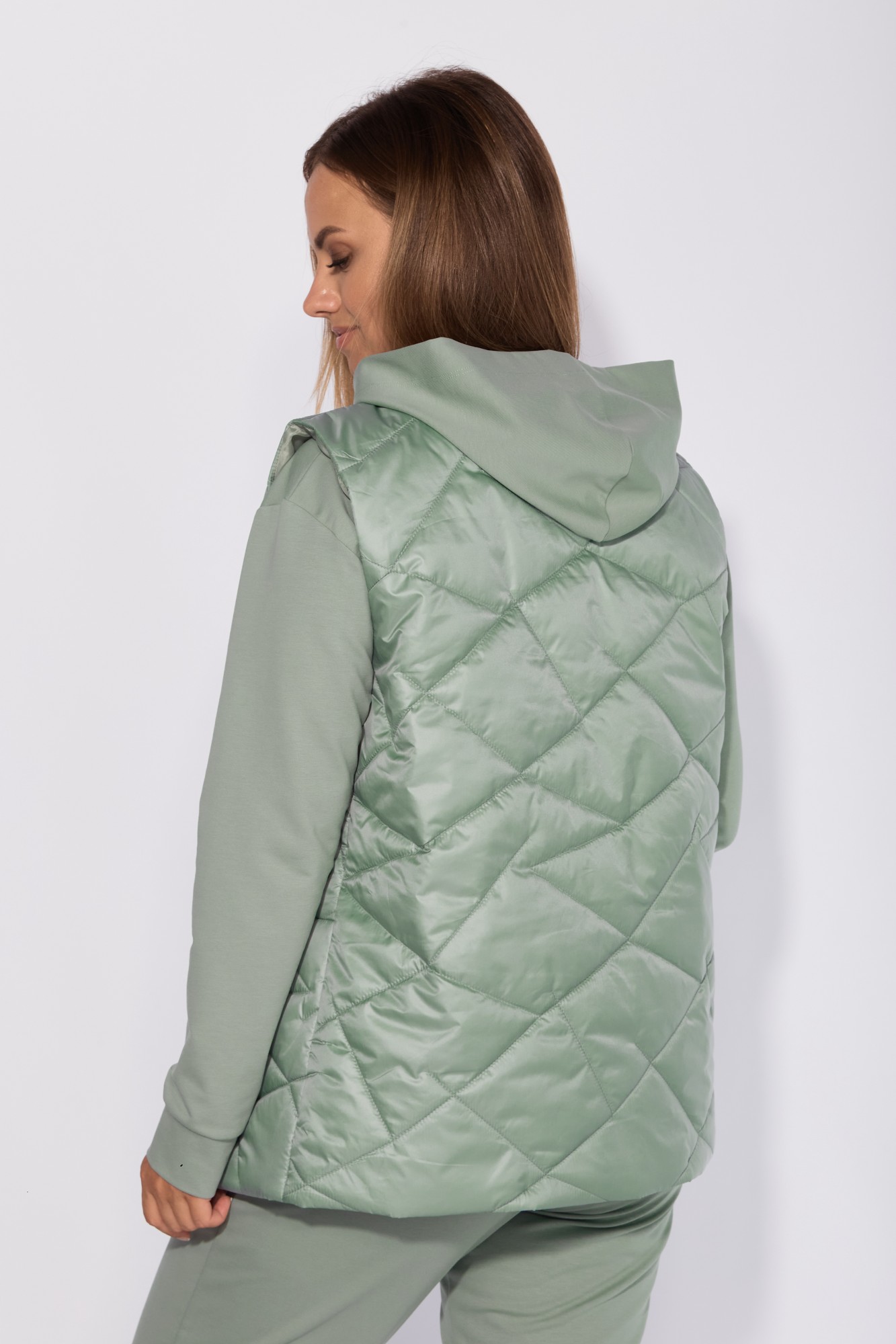 Жилет - (плащевка стеганая с синтепоном) полиэстер 100%. Костюм- (трикотаж) вискоза 60%, полиэстер 37%, лайкра 3%
