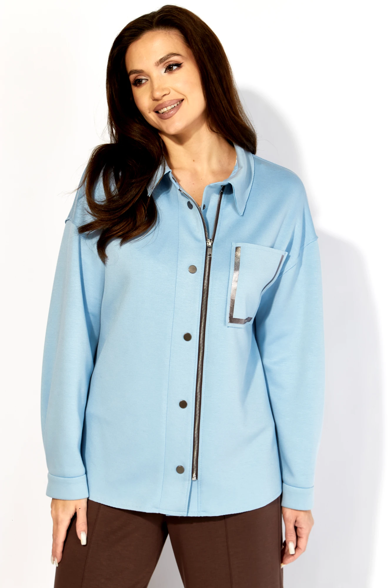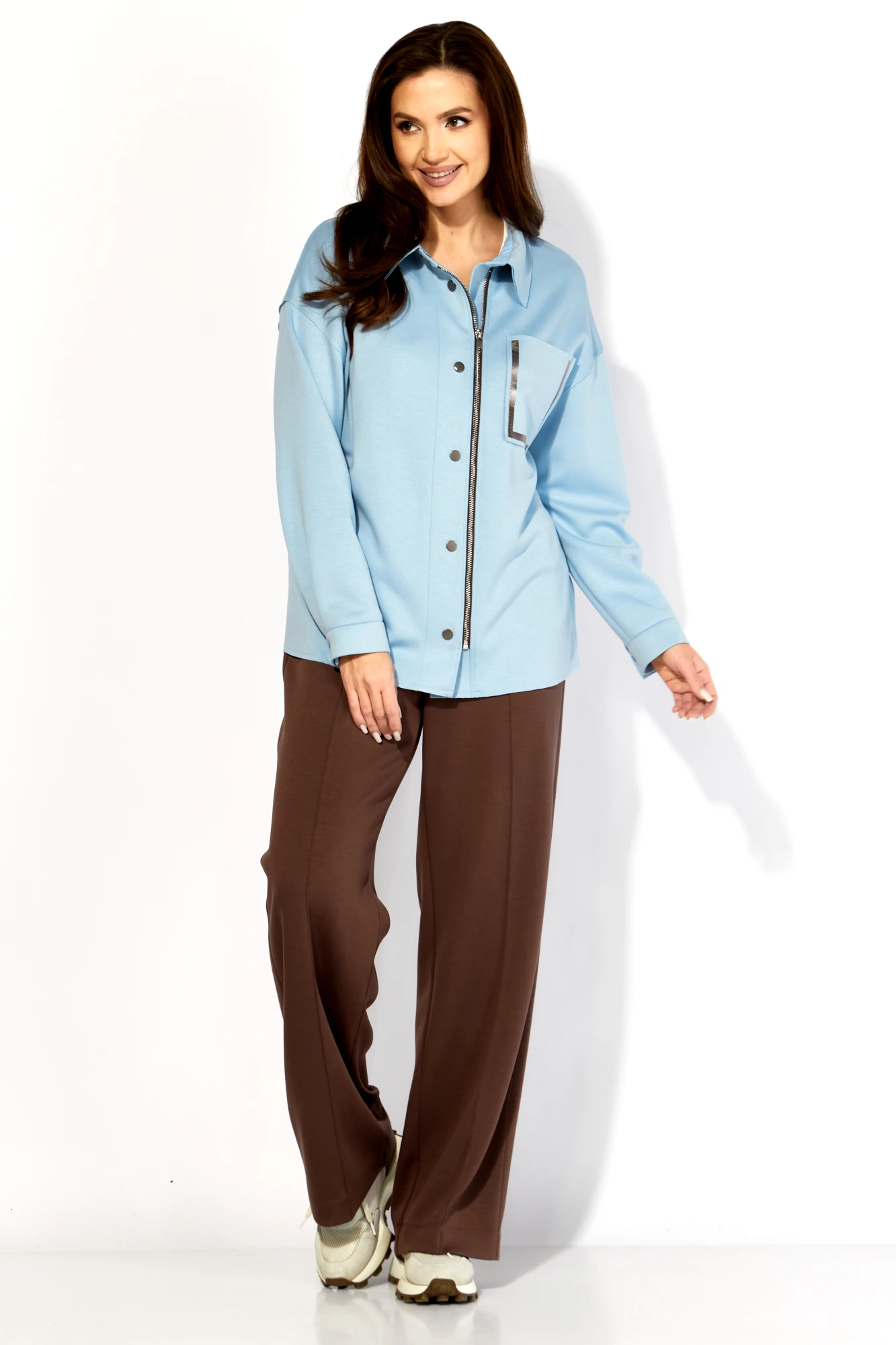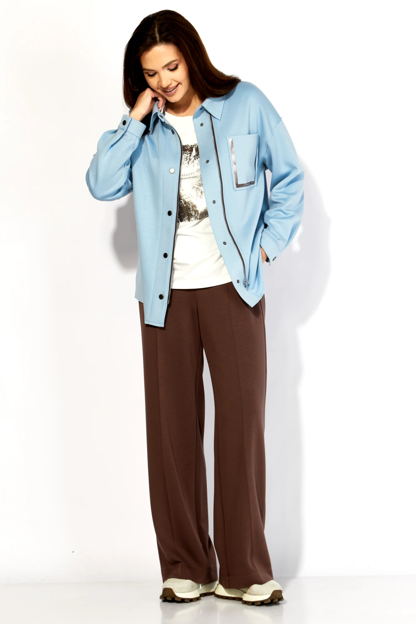 Брючный костюм ТAиЕР 1419 двойка голубой, коричневый