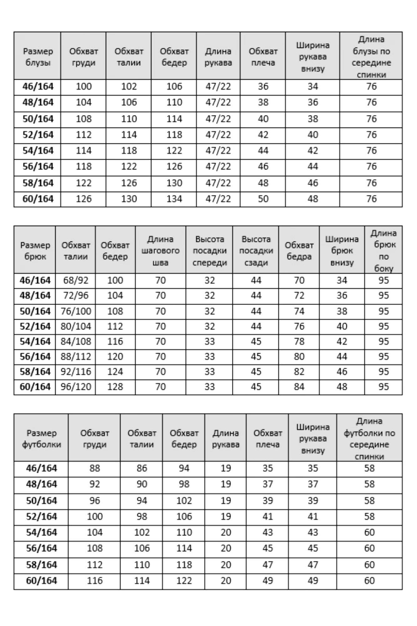 блуза и брюки - вискоза 78%, лен 22%; футболка - 95% хлопок, 5% эластан