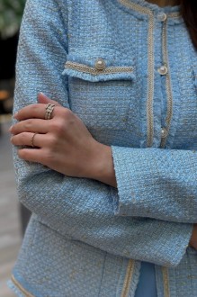 Длина жакета по среднему шву спинки – 60,0 см (±2,0 см), Ширина жакета на уровне глубины проймы – 47,0 см (±1,0 см), Ширина жакета на уровне линии талии – 43,0 см (±1,0 см), Ширина жакета на уровне линии бедра – 50,0 см (±1,0 см), Длина рукава жакета – 60,5 см (±1,0 см), Ширина рукава жакета вверху – 17,0 см (±1,0 см), Ширина рукава внизу - 12,5 см (±0,5 см), Длина плеча жакета – 11,5 см (±0,5 см).