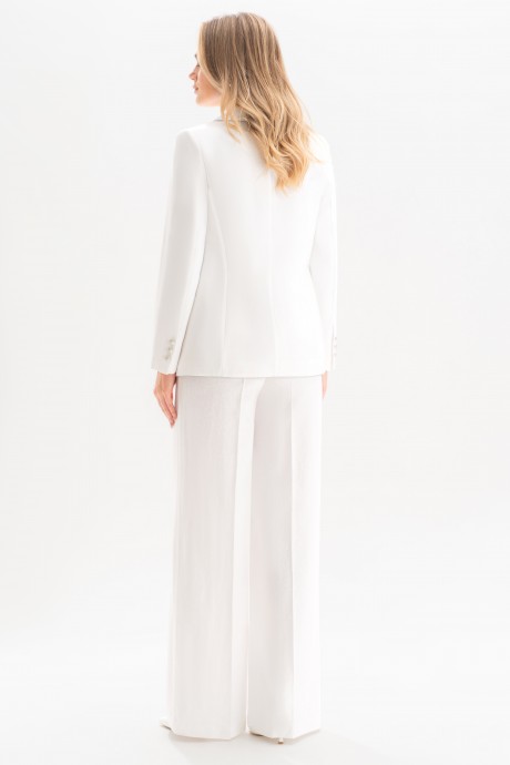 Этот белоснежный женский костюм из льна — идеальный выбор для тех, кто ценит сдержанную роскошь и натуральные ткани. Прямой двубортный жакет украшен изысканным кантом, подчёркивающим линии силуэта и придающим образу благородство. Изящные пуговицы с фактурным блеском дополняют стильный образ. Свободные брюки с высокой посадкой визуально удлиняют ноги и дарят максимальный комфорт даже в жаркий день. Льняная ткань приятна к телу, дышащая и экологичная — идеальный выбор для весны и лета. Сочетайте костюм с базовым топом и лодочками для делового образа или носите с лёгкой майкой и сандалиями — для расслабленного шика в отпуске. Костюм женский состоит из жакета и брюк, выполненных из костюмной льняной ткани, предназначен как для нарядной так и для повседневной носки. Жакет свободного полуприлегающего силуэта, на подкладке, с двубортной застежкой на 2 петли и 4 металлические пуговицы (размер и цвет фурнитуры может незначительно отличаться от фото). Перед и спинка с отрезным бочком. Перед в нижних частях с прорезными карманами с клапаном и обтачкой, с таллиевыми вытачками, с рельефными швами бочка. Клапаны по двум сторонам с отделочным серебристым кантом, концы клапанов слегка закруглены. Спинка со средним швом, с рельефными швами бочка. Рукава втачные, двухшовные, длинные. В локтевом шве по низу с отлетной шлицей с 3-мя петлями и 3-мя пуговицами. Горловина оформлена воротником пиджачного типа. Концы воротника и лацкана закругленные. Воротник, лацканы, борта, низ переда и спинки обработан отделочным серебристым кантом. Жакет с плечевыми накладками. Брюки женские прямые от бедра, в размерах 42,44,46,48 на обтачном поясе, в размерах 50,52 с притачным поясом, с резинками на уровне боковых швов. По поясам с 5-ю шлевками, с застежкой на тесьму - «молнию», расположенную в среднем шве передних половинок. Пояс застегивается спереди на 1 пришивной потайной крючок, 1 петлю и 1 потайную пуговицу (размер и цвет фурнитуры может незначительно отличаться от фото). Задние половинки брюк с таллиевыми вытачками, идущих от пояса вниз. Брюки с заутюженными стрелками по передним и задним половинкам.