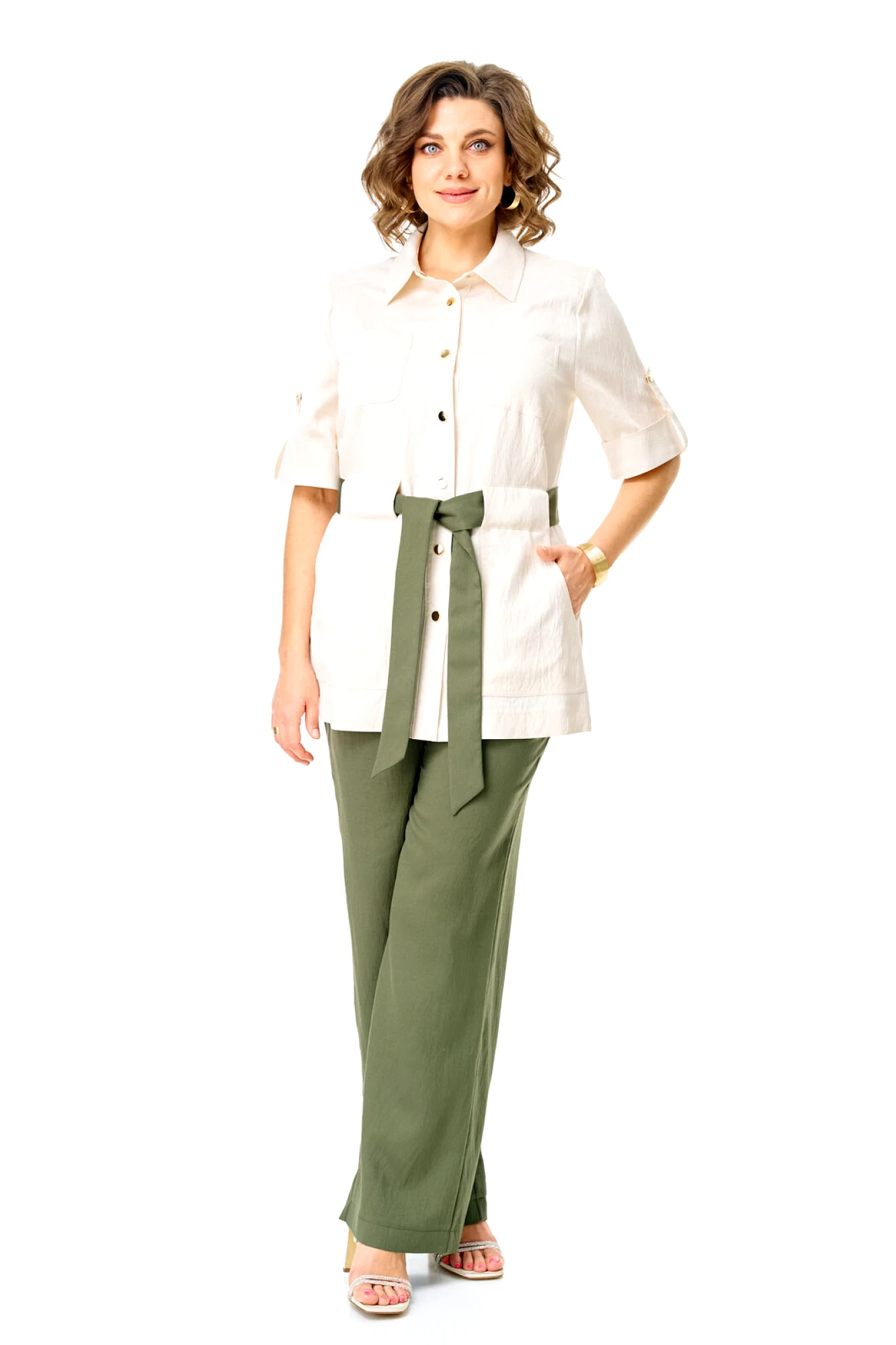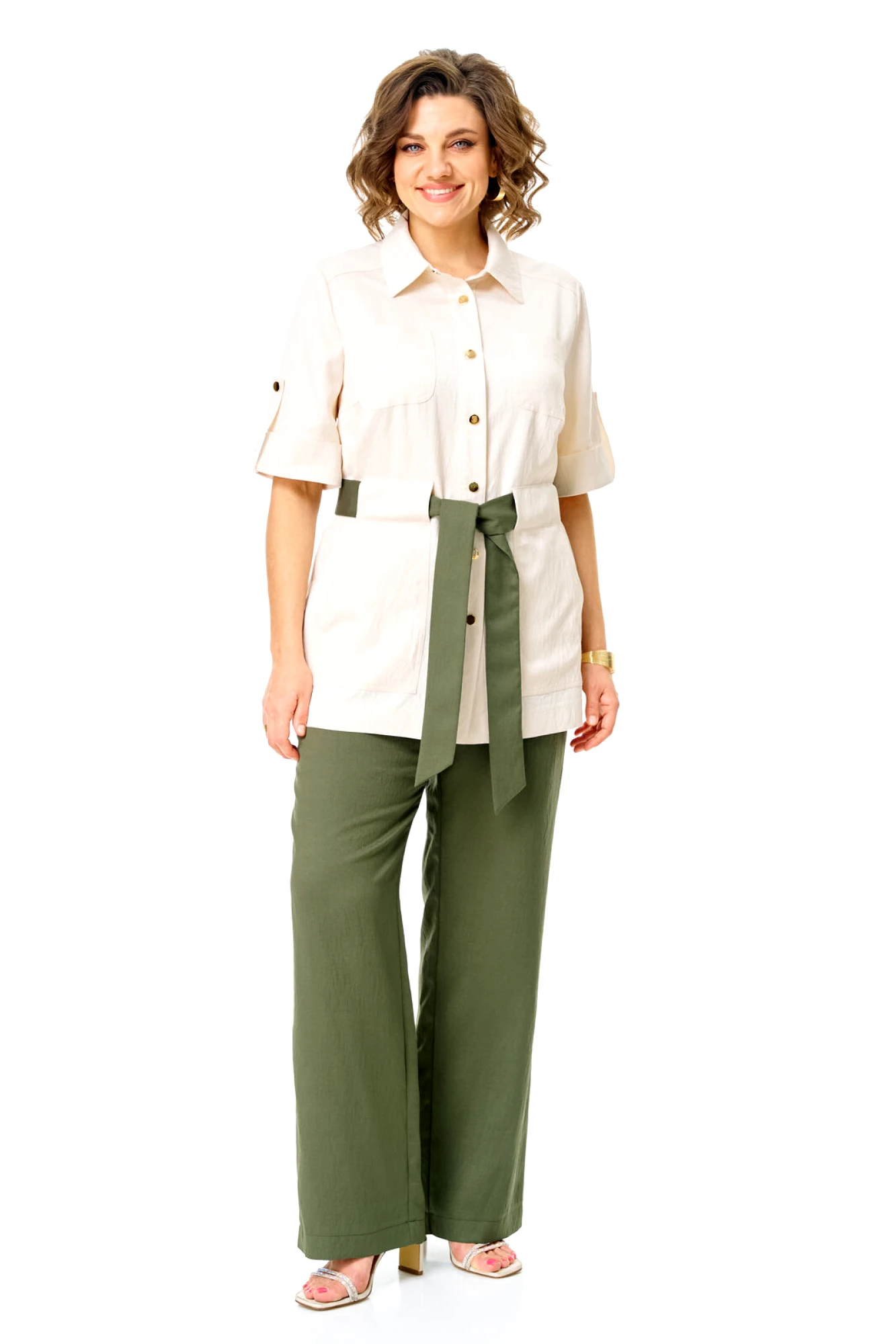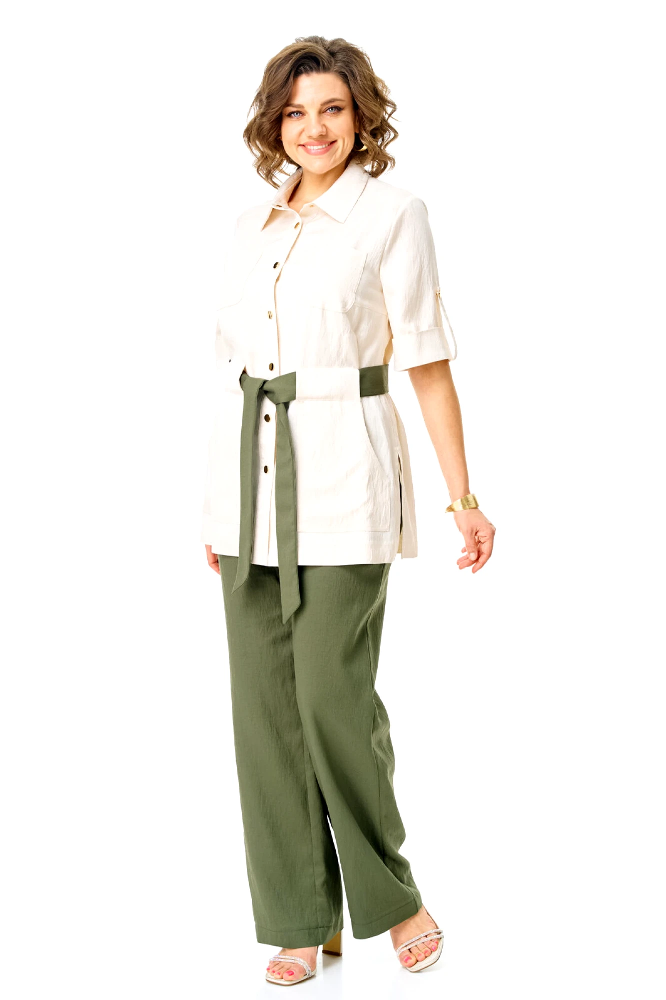 Брючный костюм Vi Oro 1265 двойка оливка, молоко