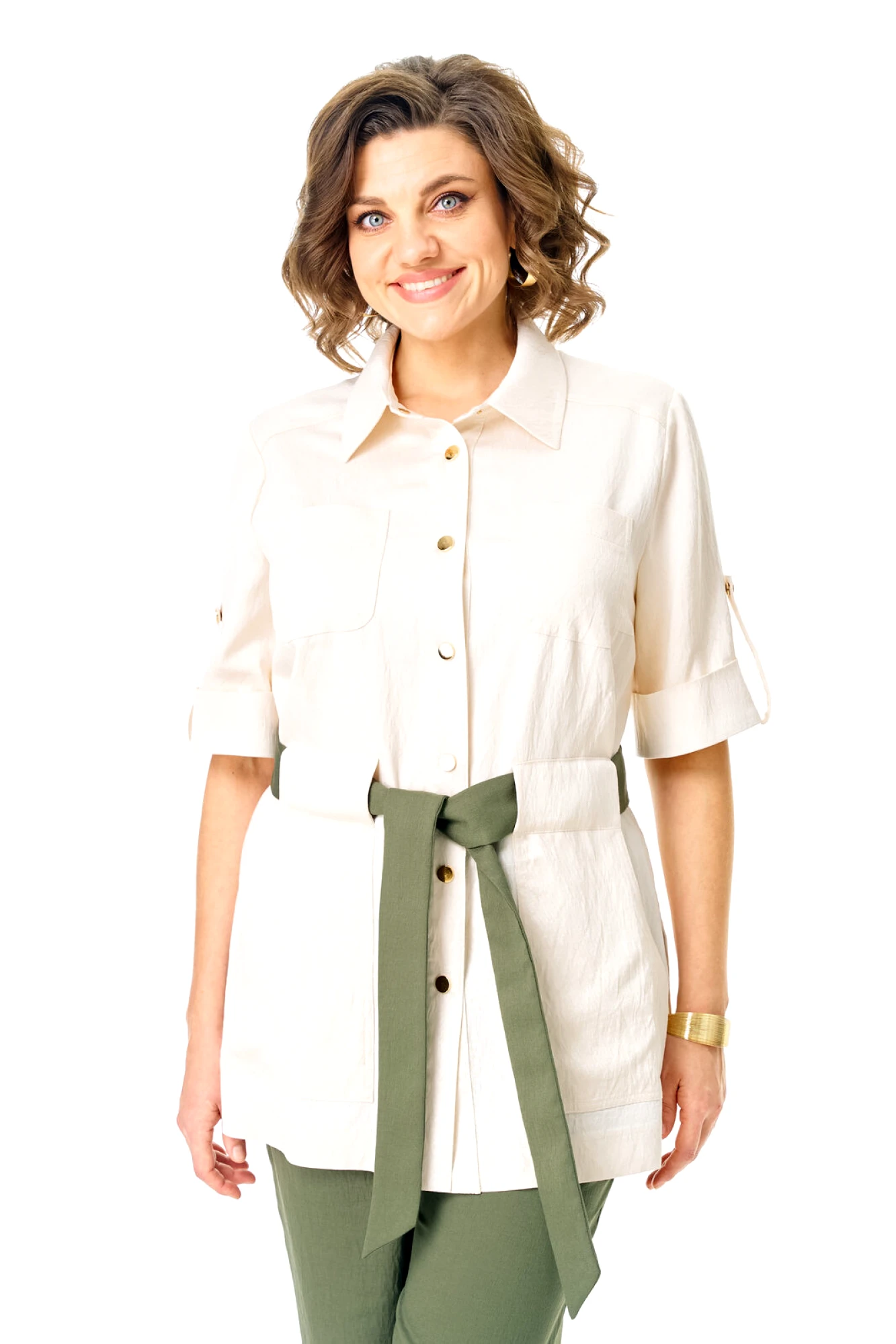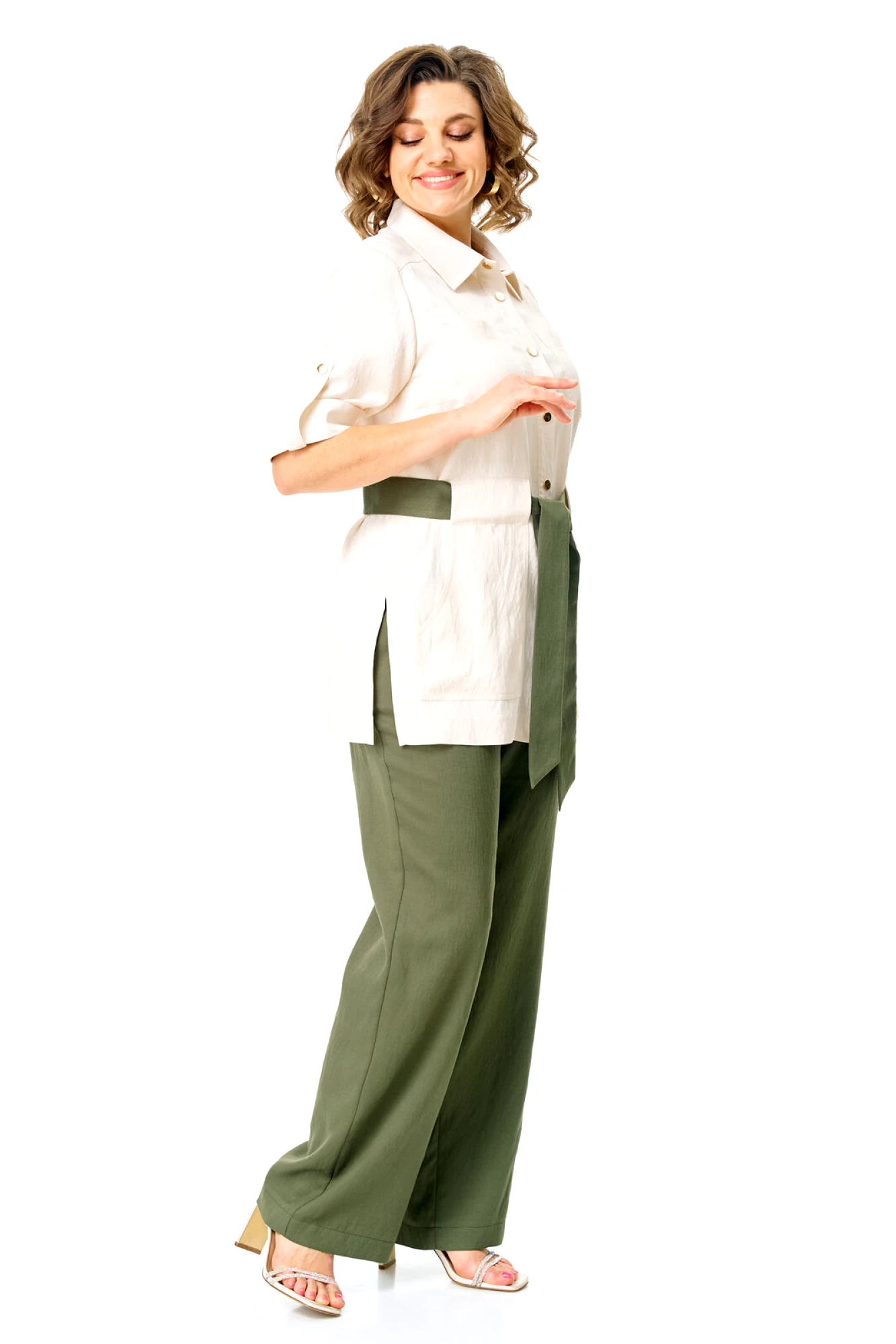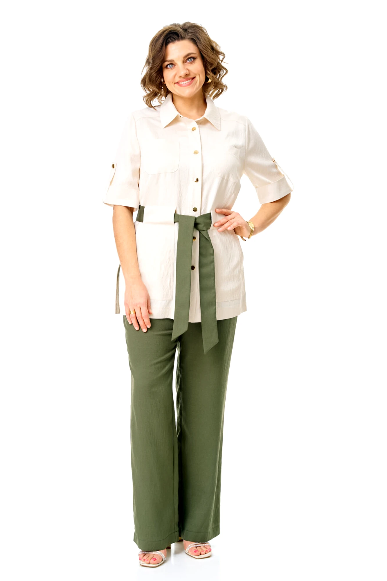 Брючный костюм Vi Oro 1265 двойка оливка, молоко