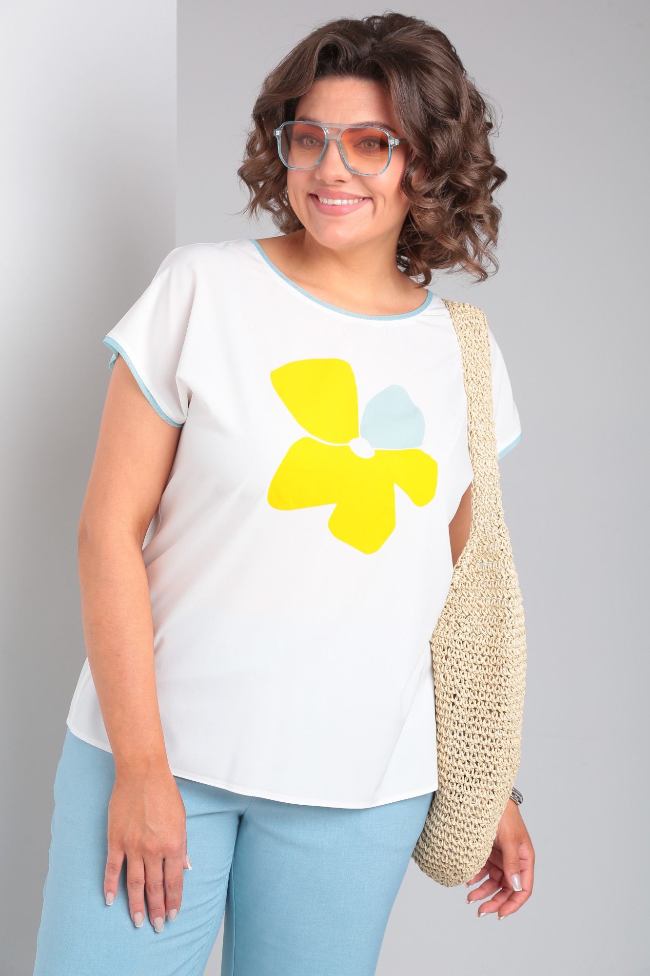 Брючный костюм Vilena Fashion 960 тройка голубой, белый с ID товара 392891