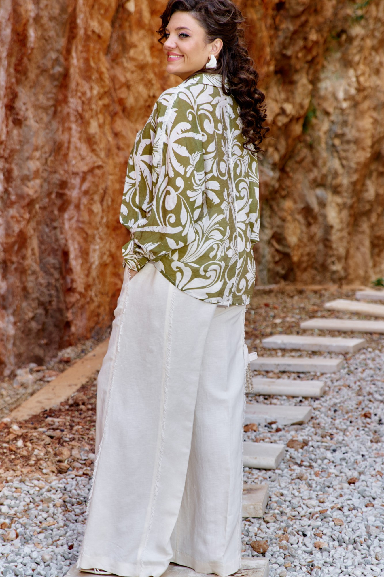 Блузка состав: 76,1% тенсел, 23,9% полиэстер. Брюки состав: 53% лён, 47% вискоза