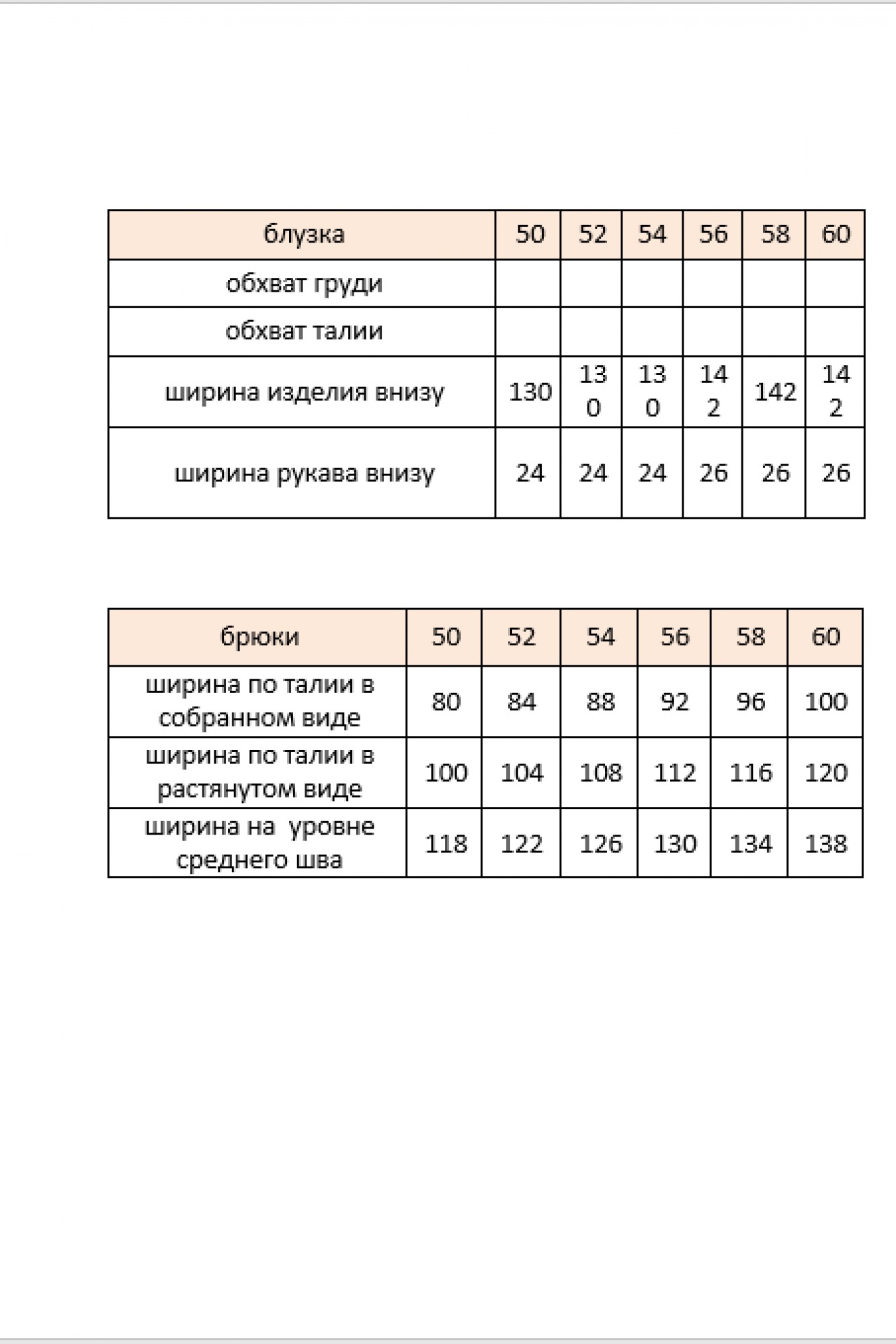 Длина блузки по боковому шву 69 см. Длина рукава от горловины 73 см. Длина брюк по боковому шву 108 см.