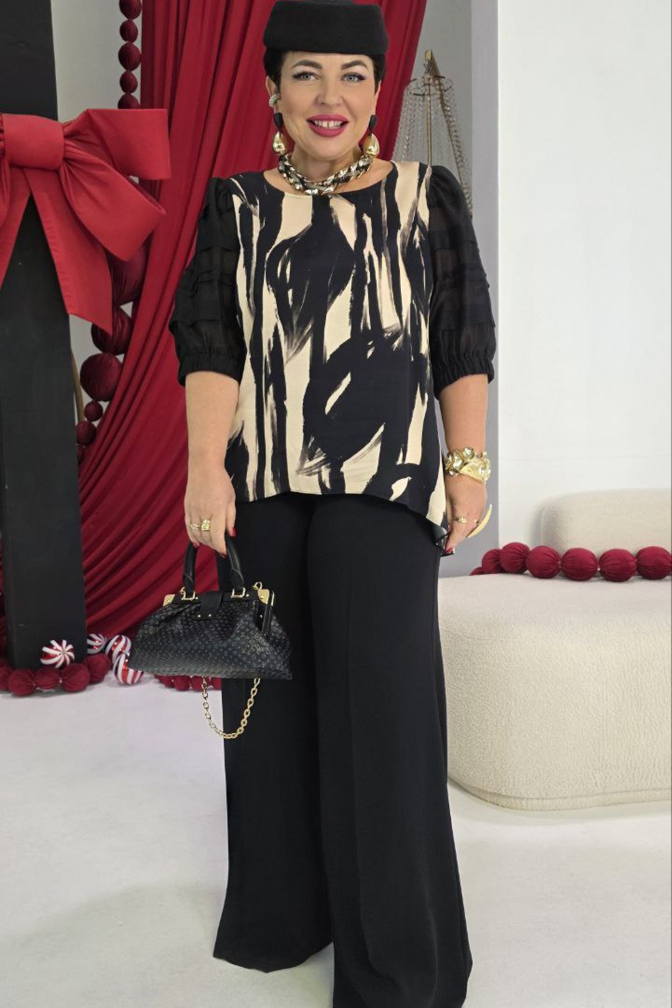блуза 100% вискоза, брюки 97% полиэстер, 3% спандекс.