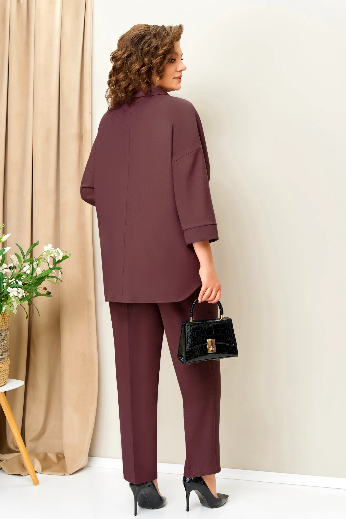 Брючный костюм Volna 1406 тройка слива
