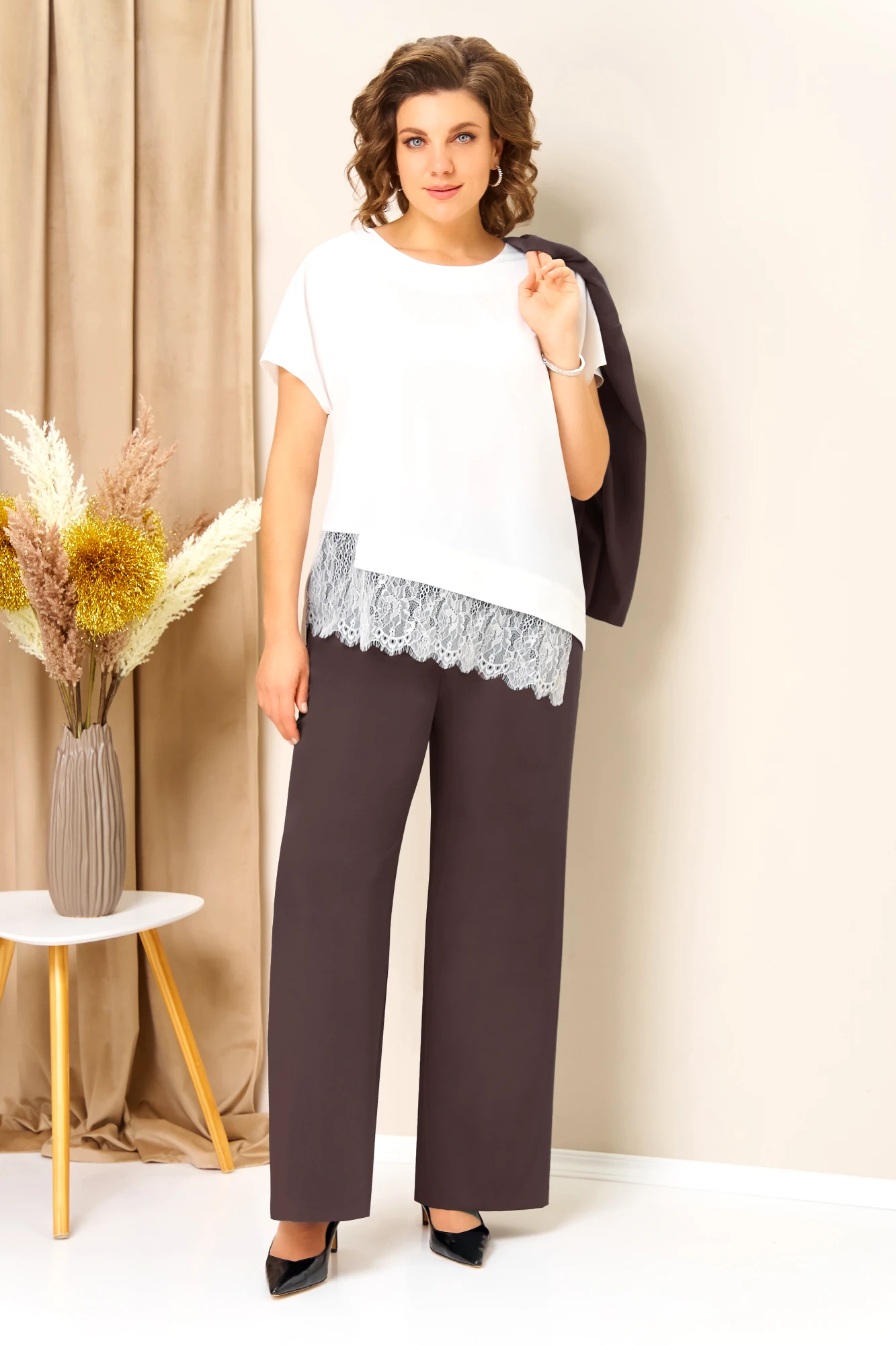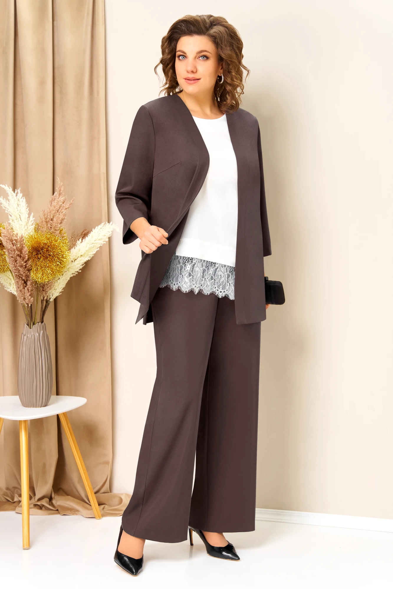 Брючный костюм Volna 1458 тройка кофейно-коричневый