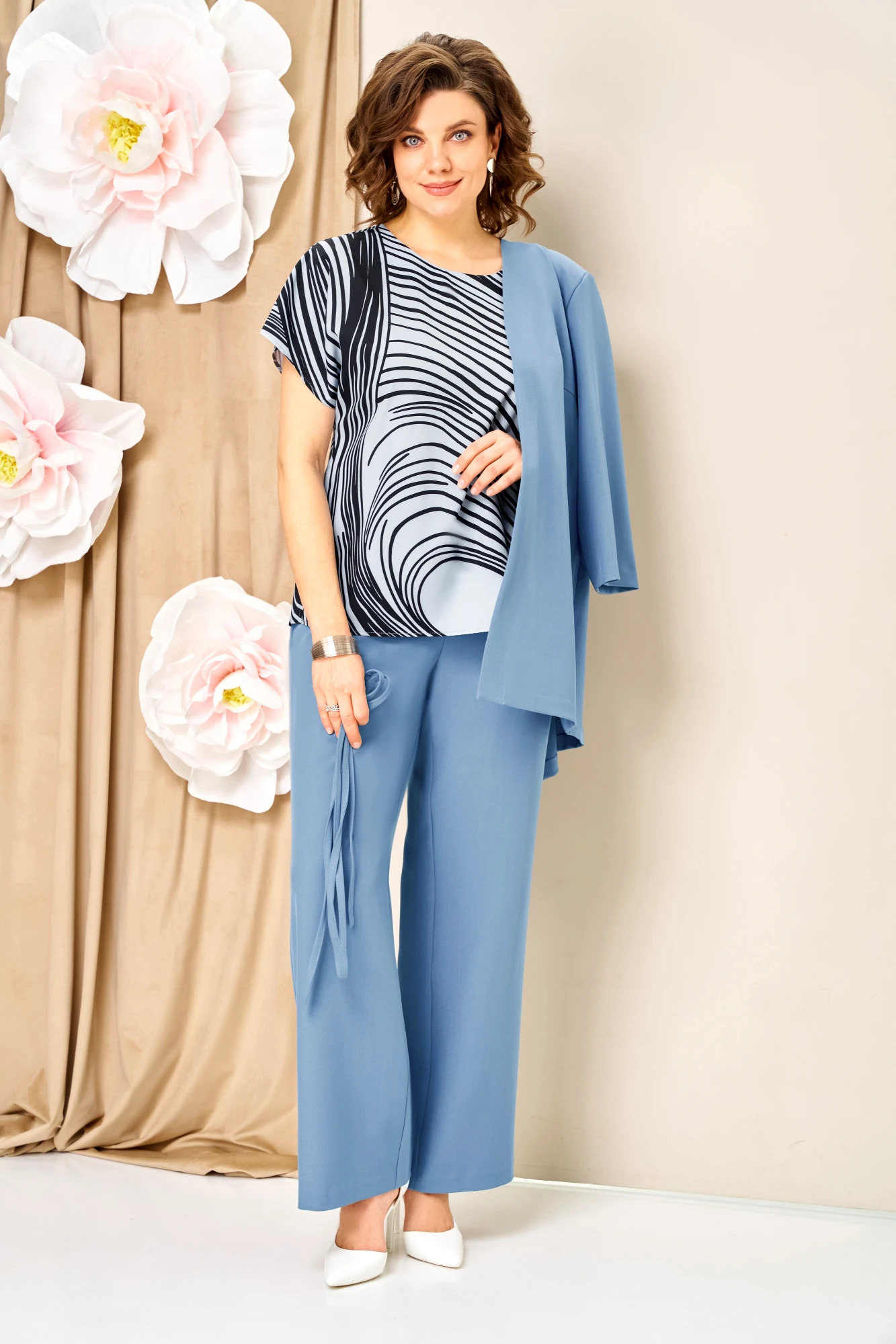 Брючный костюм Volna 1458 тройка светло-голубой