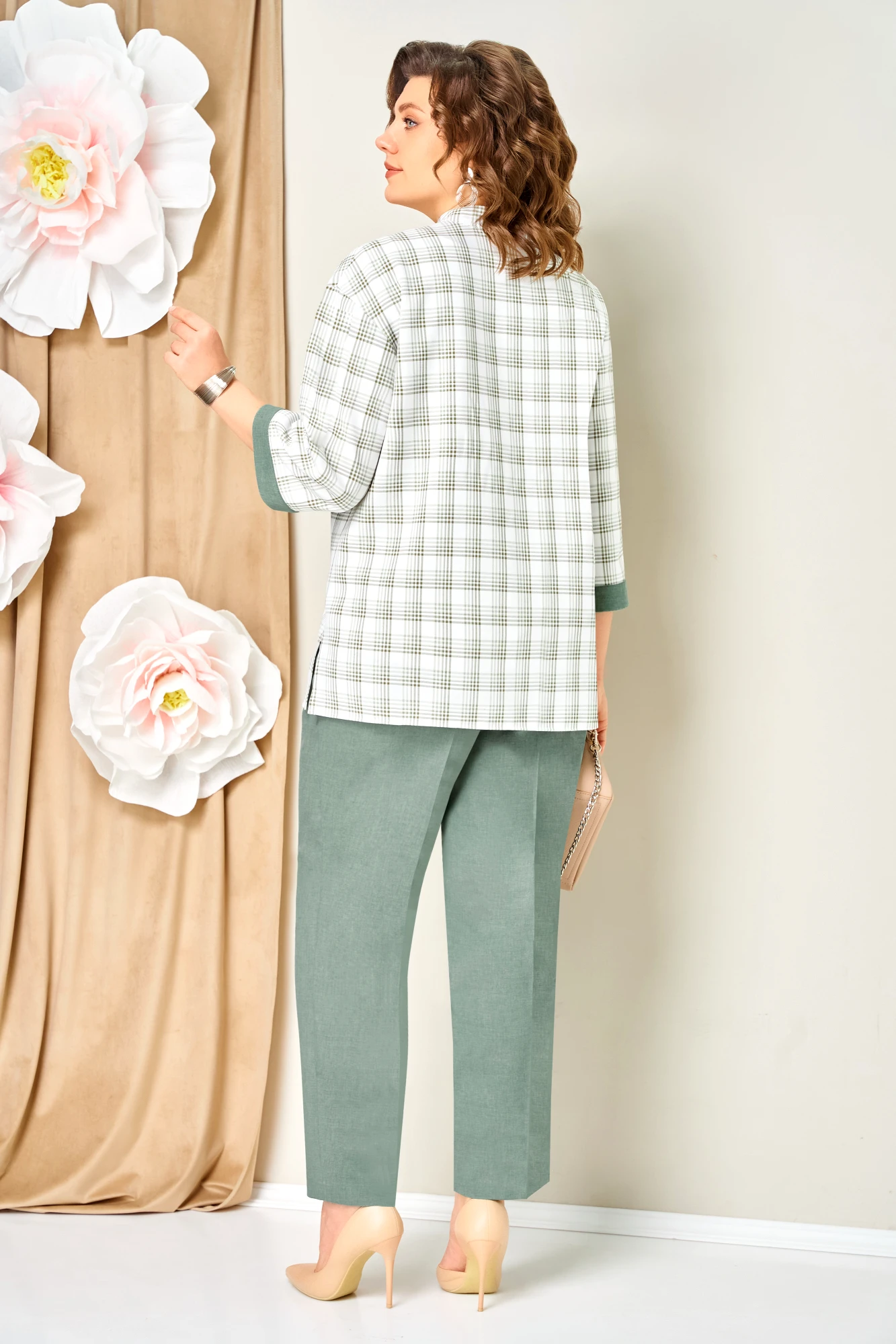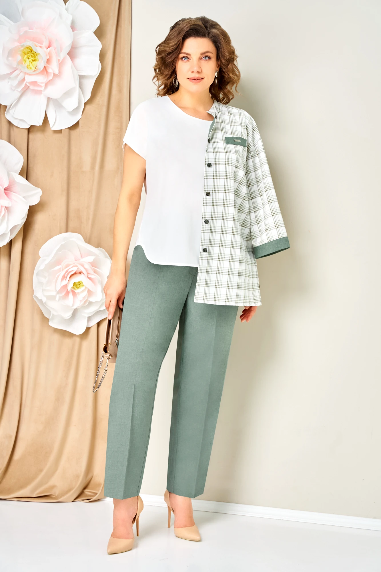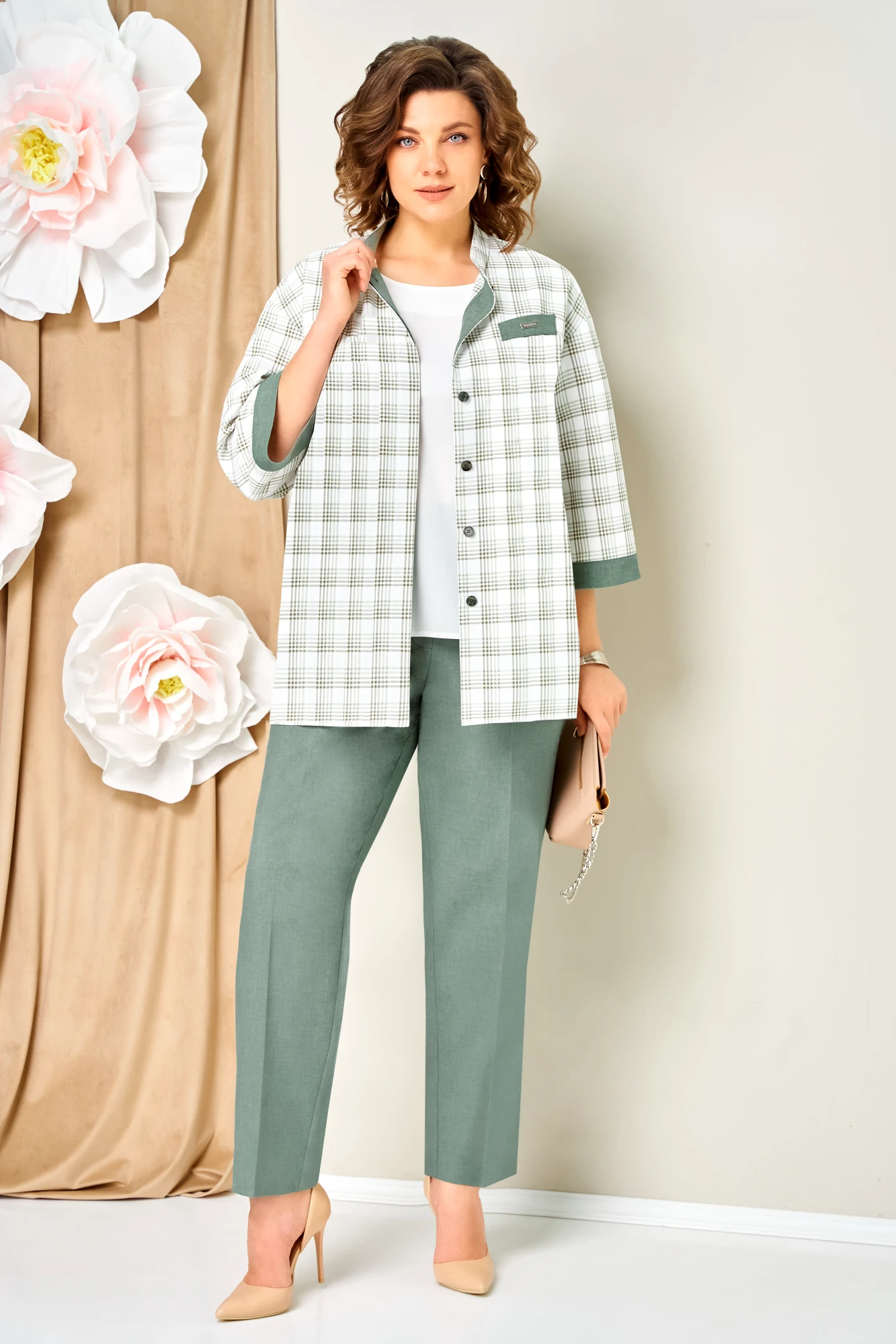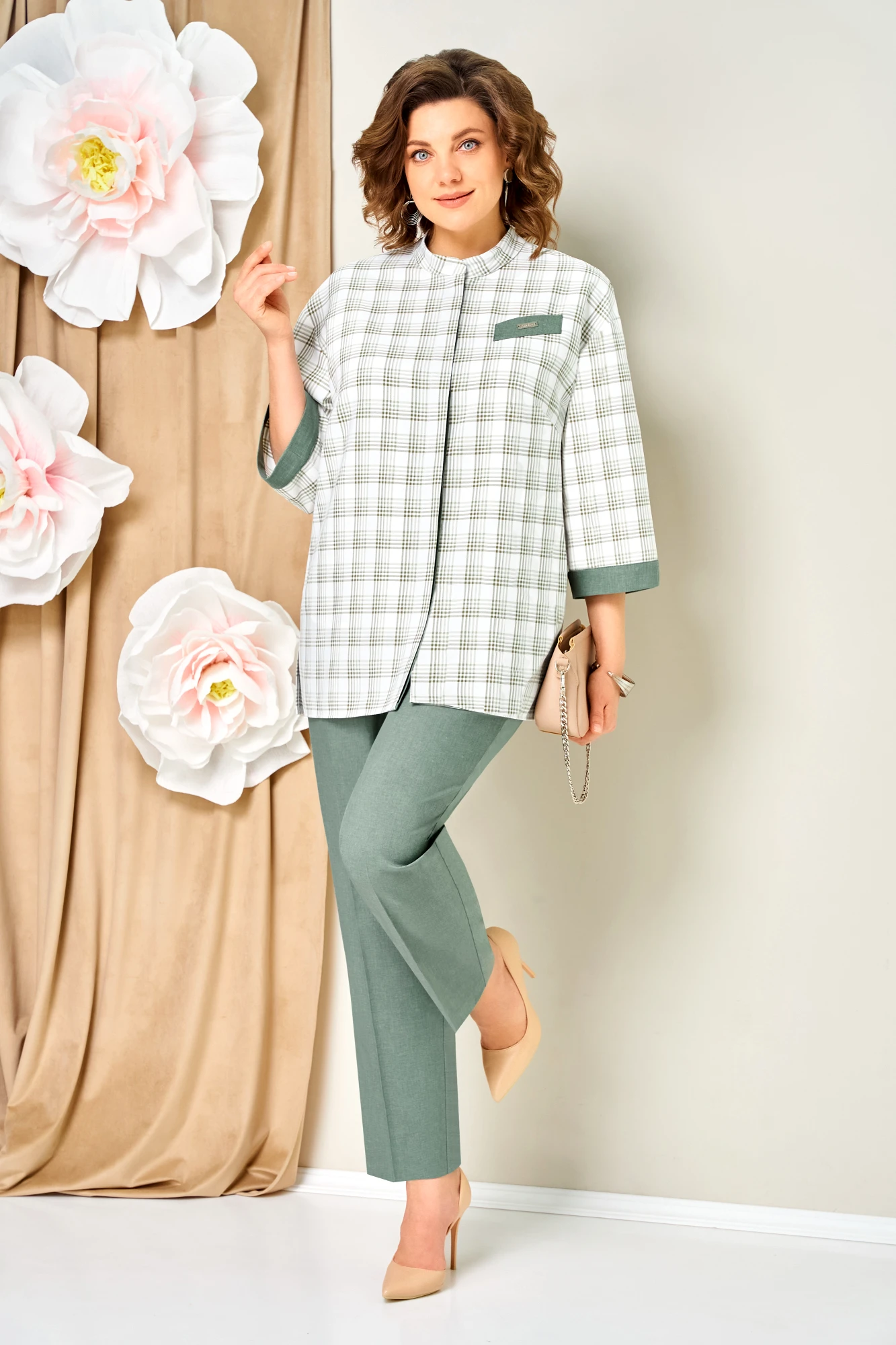 Брючный костюм Volna 1465 тройка светло-зеленый