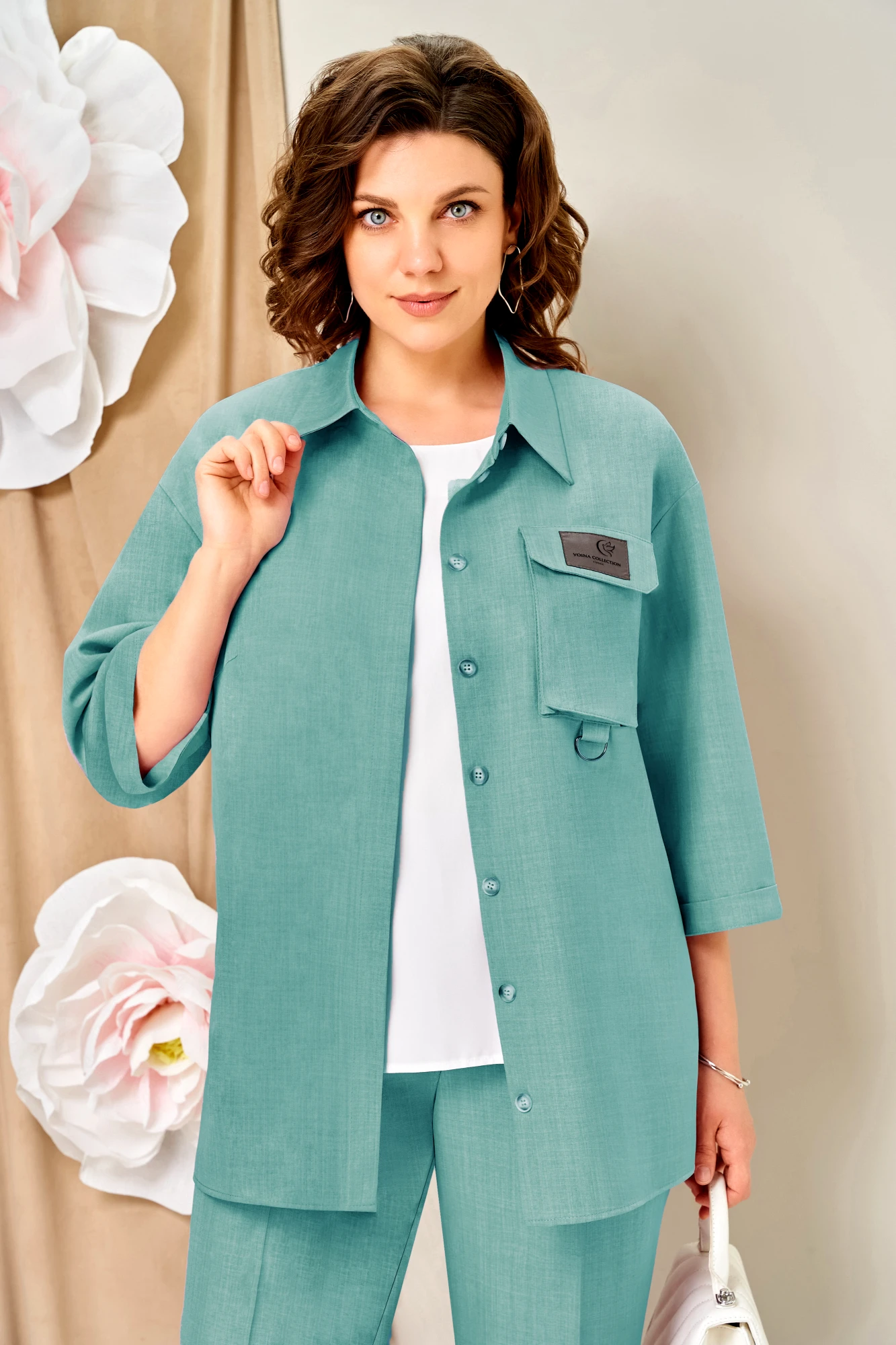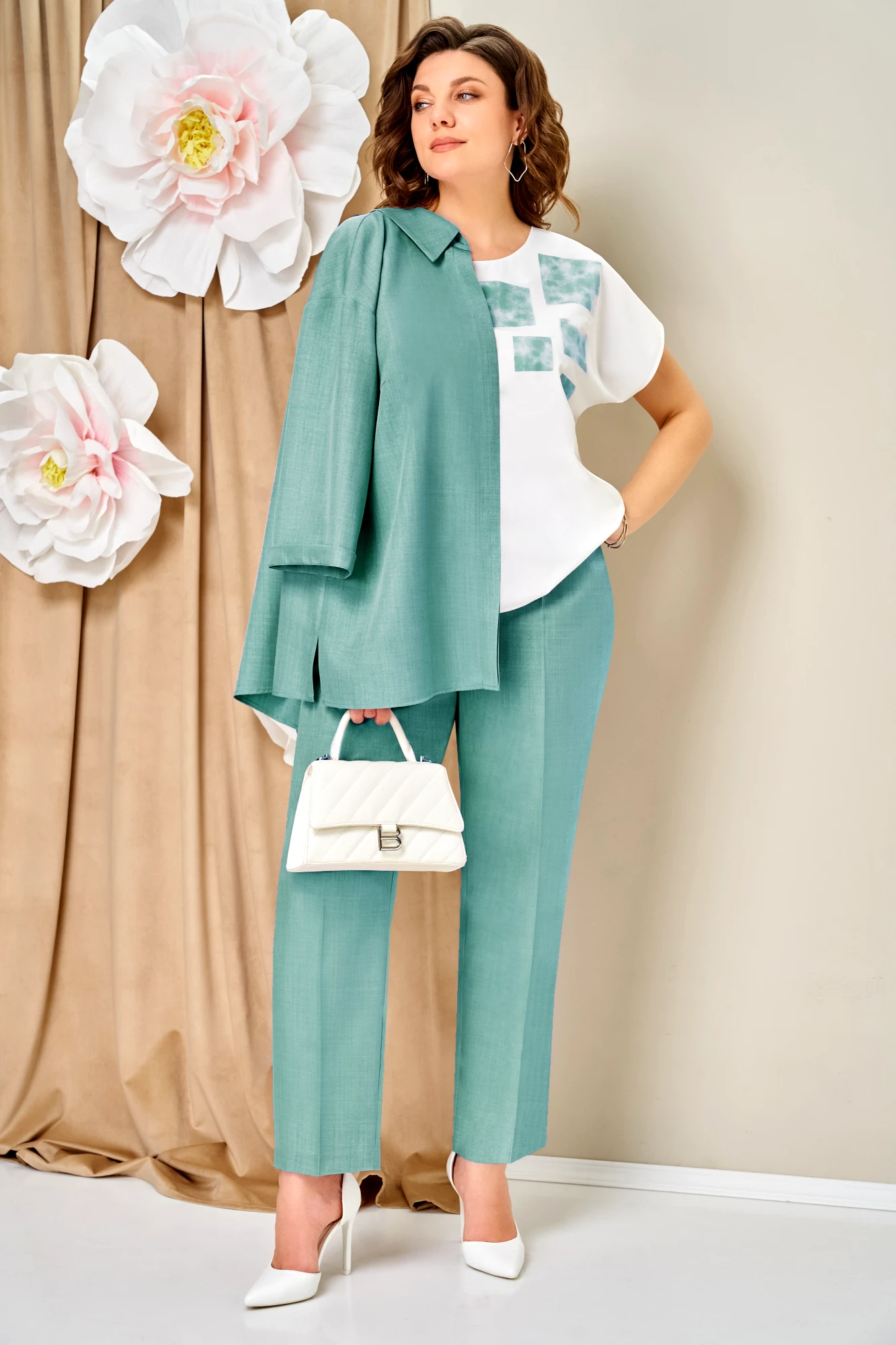 Брючный костюм Volna 1473 тройка бирюзовый