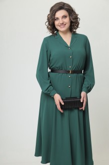 Комплект женский, состоящий из жакета и платья. Жакет полуприлегающего силуэта на подкладке. Длина жакета по среднему шву спинки р. 48,50,52,54 - 42,0 см., р. 56,58,60 – 45,0 см. Деталь переда с двумя талевыми выточками и с фигурным подрезом около горловины. Спинка со средним швом и рельефами, выходящими из проймы вниз. Рукава втачные, двухшовные, длиной 48,0 см., с разрезом по локтевому шву. Горловина углубленная, круглая, обтачная. Борта круглые, застежка на навесную петлю-пуговицу. Изделие с плечевыми накладками. Платье полуприлегающего силуэта, отрезное по линии талии, длинной, р. 48,50,52,54 –110,0 см., р. 56,58,60 - 113,0 см. посередине спинки. На детали переда рельефы выходят из проймы, проходят через центр груди вниз. Спинка цельнокроеная, с талевыми выточками. Юбка широкая к низу, с тремя клиньями спереди и сзади. Посередине каждого клина зашиты встречные складки. В левом боковом шве обработана застежка на потайную тесьму молнию. Рукава втачные, одношовные, длиной р. 48,50,52,54 – 17,0 см., р. 56,58,60 - 25,0 см. Горловина углубленная, обтачная, с вырезом в виде “капельки” посредине переда. Углы выреза скреплены украшением. Пояс отлетной, обтачной, из двух цветов ткани, с перекантом на лицо и с застежкой на петлю-пуговицу сзади. Изделие с плечевыми накладками.