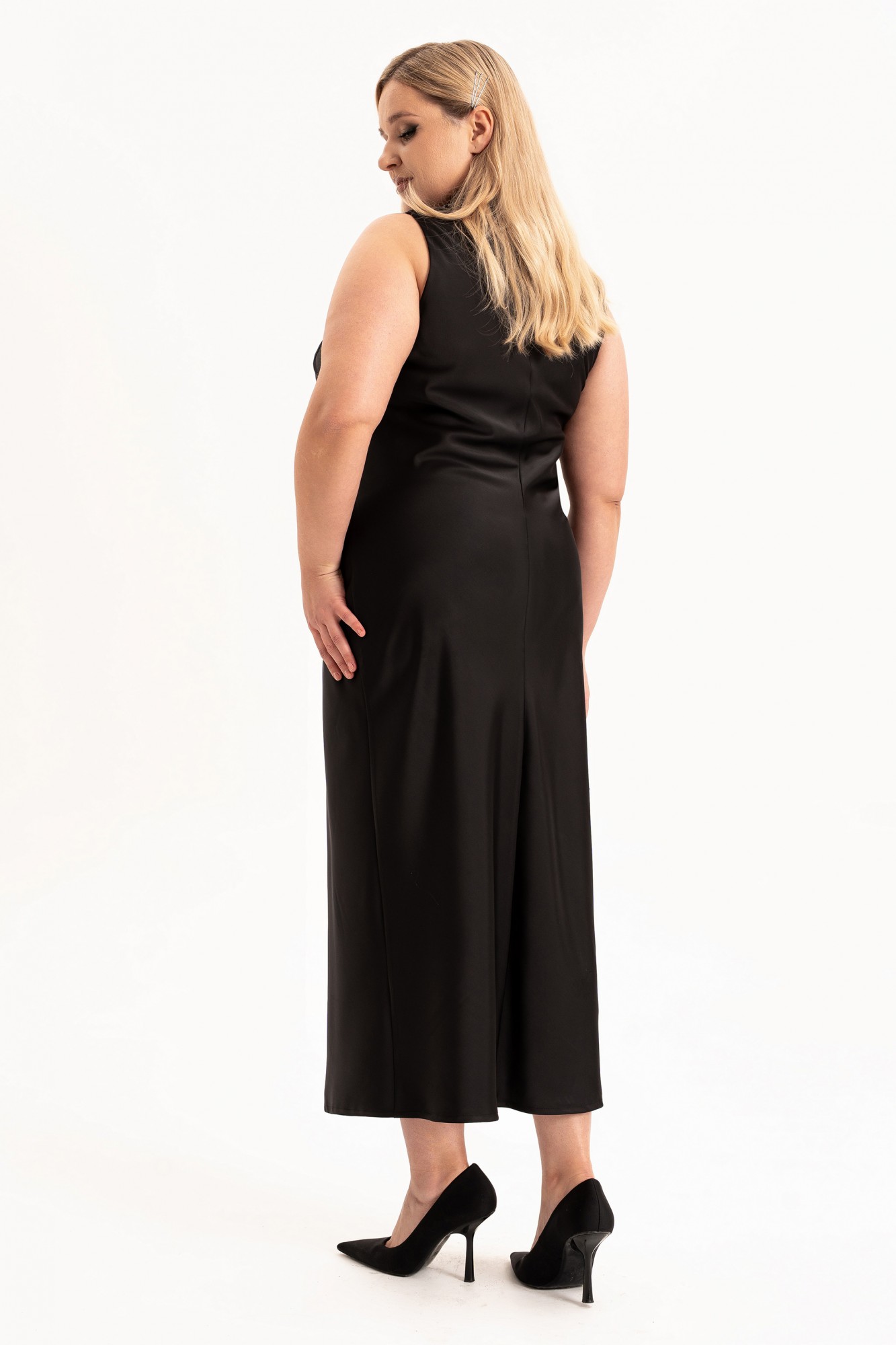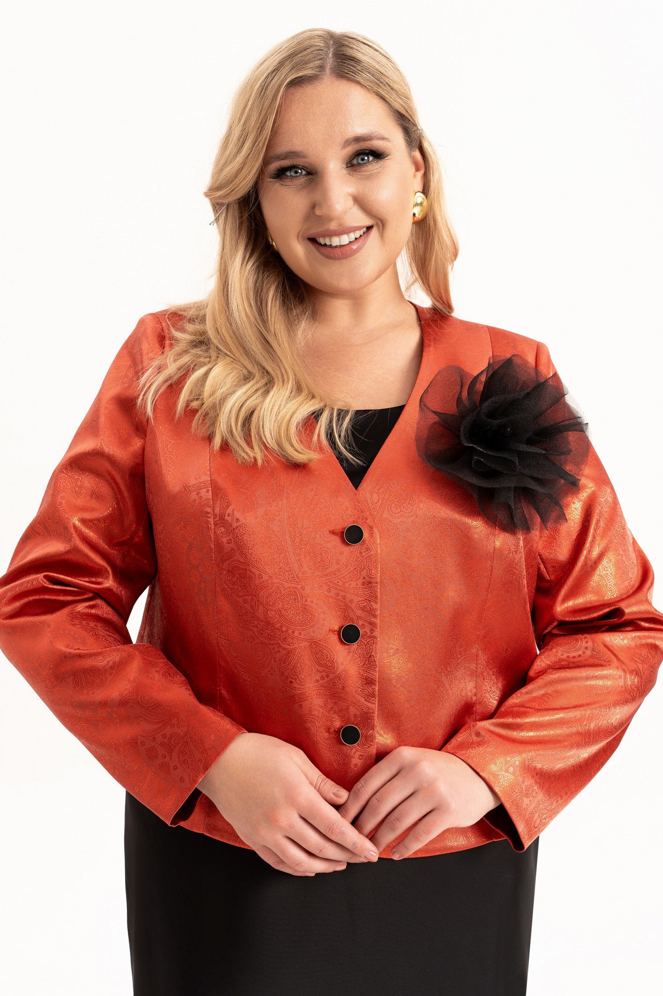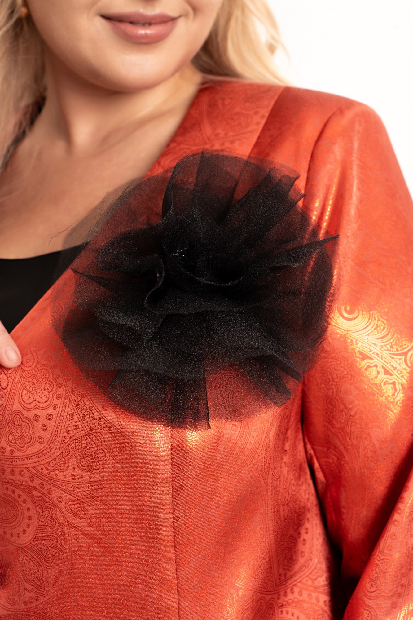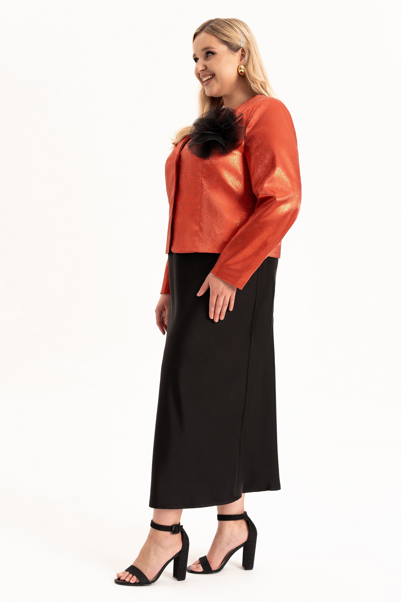 Элегантный женский комплект «двойка» больших размеров — идеальный выбор для женщин с пышными формами, который сочетает в себе комфорт, стиль и изящество. Модель состоит из двух элементов: лаконичного платья из струящегося атласа, кроеного по косой и короткого жакета, полуприлегающего силуэта на подкладке. Такой тандем создает утонченный и женственный образ, который прекрасно подойдет как для вечерних выходов, торжеств, так и для повседневного ношения или работы в офисе. Жакет полуприлегающего силуэта, с центральной застёжкой на петли и пуговицы и с рельефами от плеча по переду, закругленный низ борта. Спинка в жакете со средним швом . Рукав втачной, двухшовный, длинный. Платье кроенное по косой, что обеспечивает красивую посадку и мягкое облегание по фигуре. Углубленная горловина добавляет лёгкой чувственности, а нагрудные вытачки от проймы подчёркивают линию груди. В комплекте идет съемный цветок- брошь.
