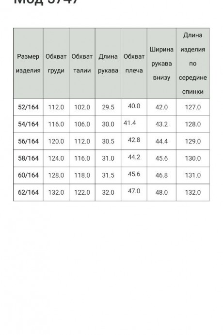 Таблица размеров