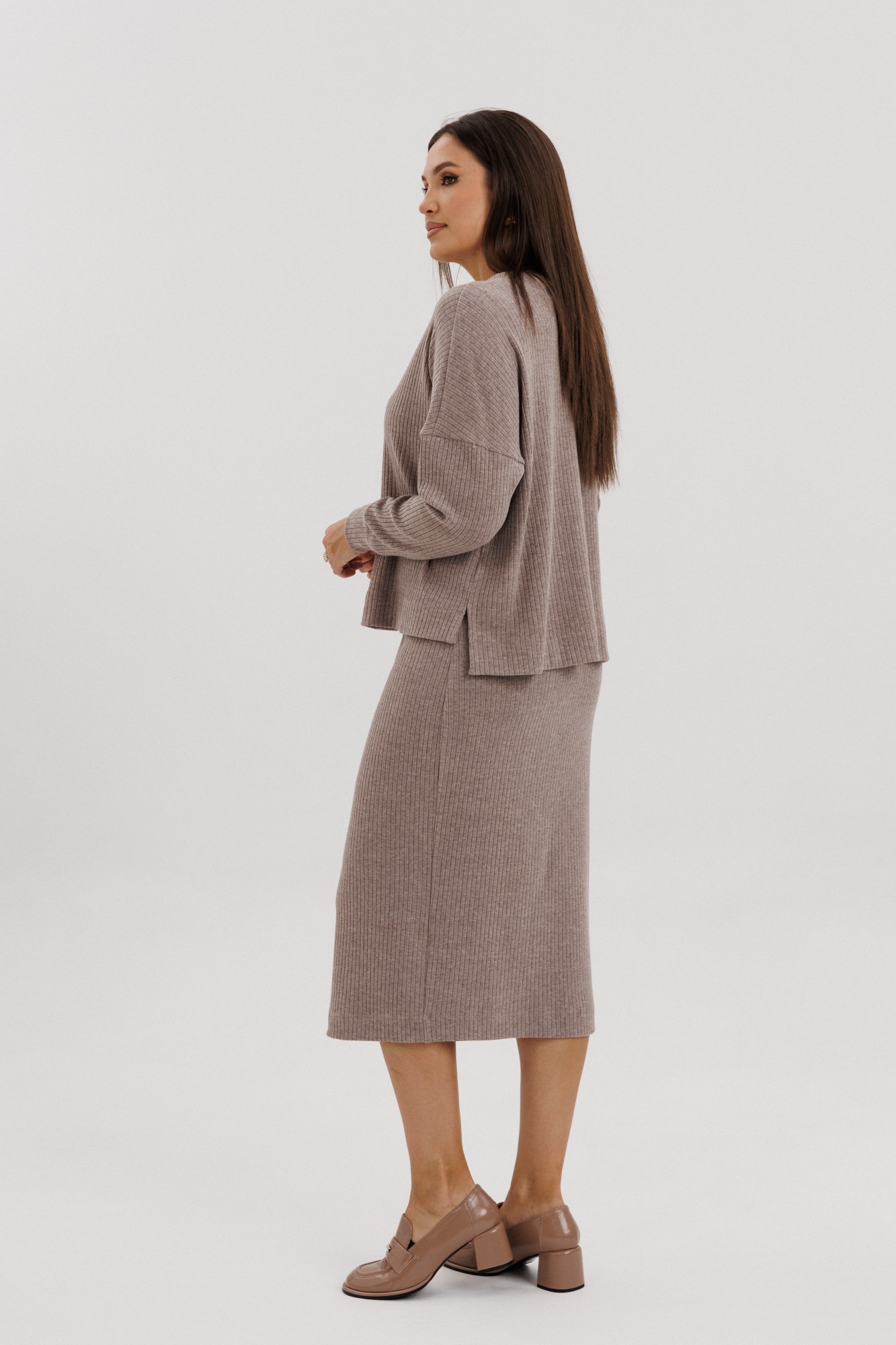 Трикотаж - это не только про зиму: ведь его мы носим круглый год, но именно осенью и зимой о выходит на новый уровень. Такой комплект создаёт трендовые образы без лишних усилий и даёт возможность подчеркнуть свой стиль. И это - кардиган и платье. Мягкое, уютное трикотажное полотно в рубчик, платье полуприлегающего силуэта, с V-образным вырезом горловины, без рукава. Кардиган средней длины, свободного силуэта, покрой с заниженной линией плеча, рукав - расширенный в области оката на притачной манжете по низу, застёжка центральная на петли и пуговицы. По линии горловины - притачная обтачка, низ изделия - разноуровневый, по боковым швам - разрезы.