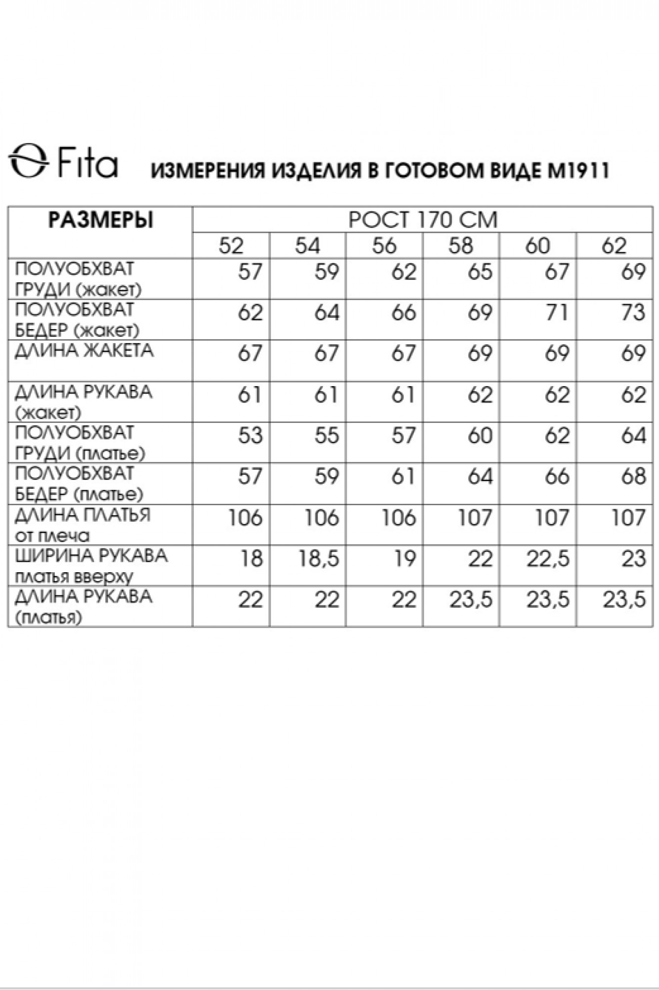 жакет: 60% вискоза, 36% полиамид 4% спандекс; платье: 70% полиэстер, 30% вискоза.