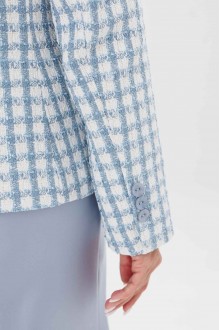 Комплект женский, состоящий из жакета и платья-комбинации. Жакет полуприлегающего силуэта, с двубортной застежкой, с лацканами и воротником пиджачного типа. Перед с нагрудными вытачками и прорезными карманами с клапанами. Спинка с рельефами и средним швом, заканнчивающимся шлицей. Рукава втачные, двухшовные, с не отлетной шлицей тремя пуговицами. Платье-комбинация прямого силуэта из атласной ткани. Перед с нагрудными вытачками. Платье на узких бретелях.