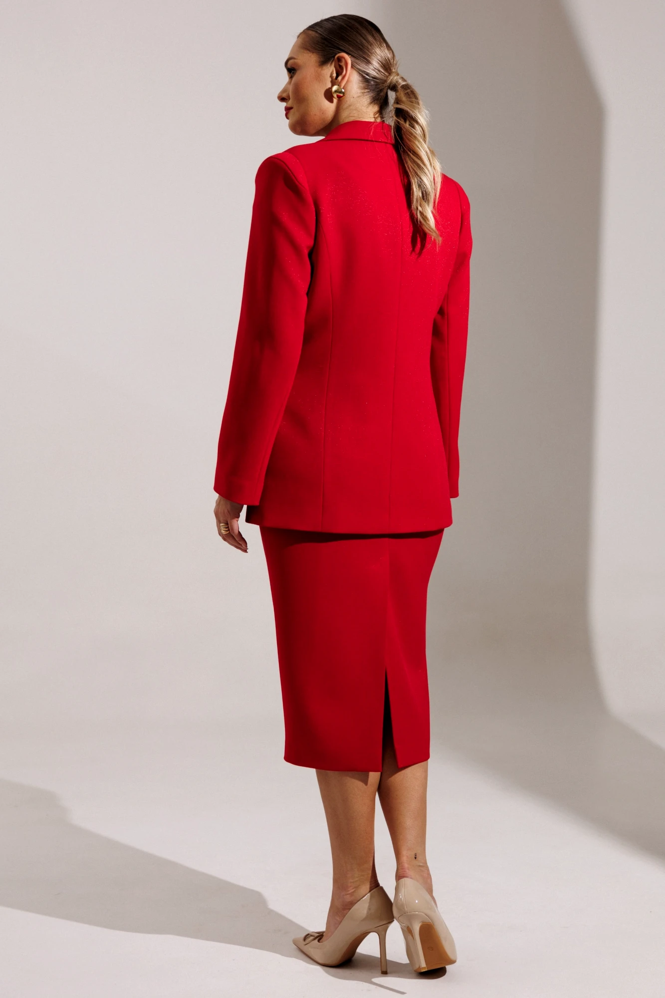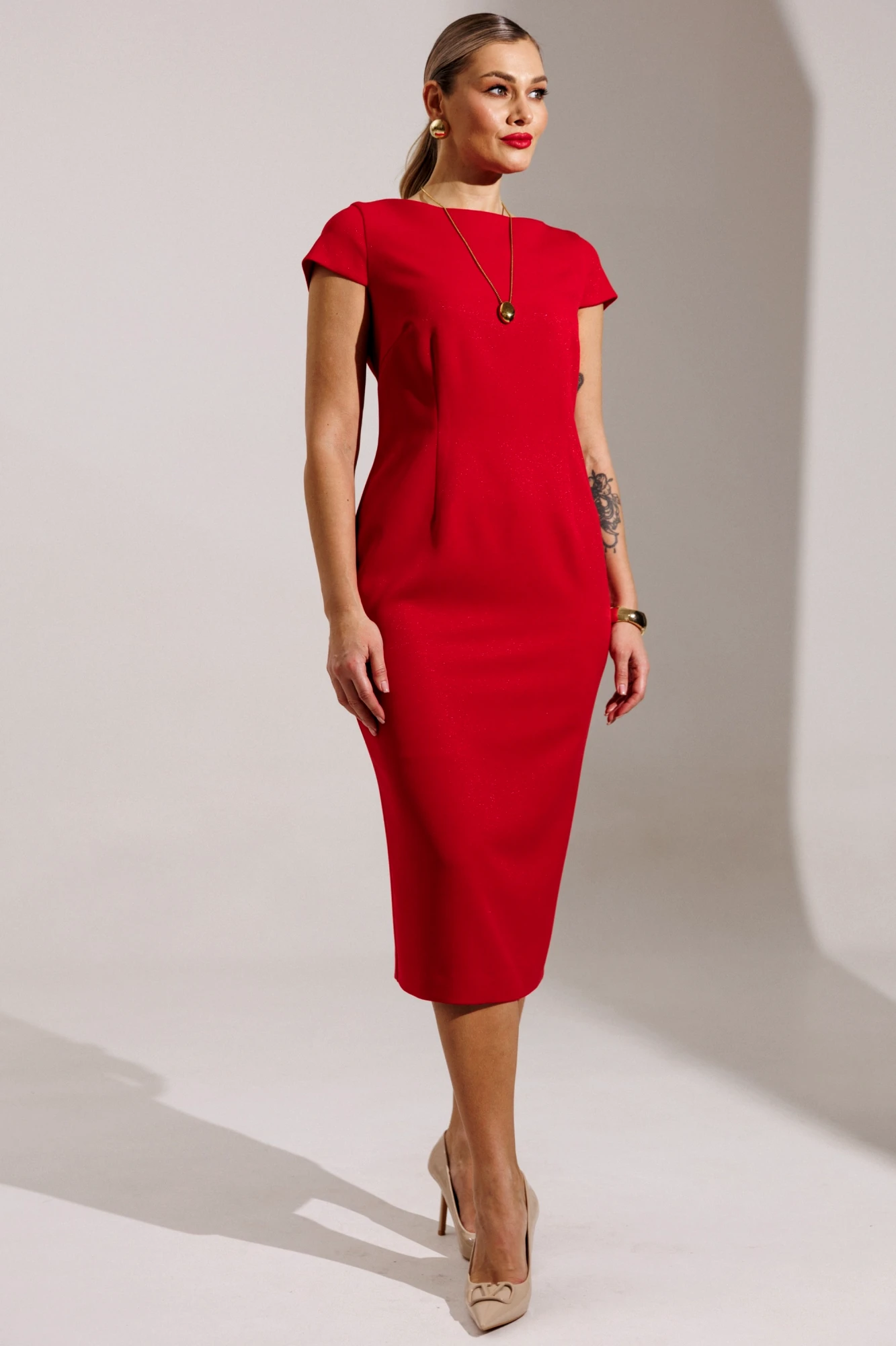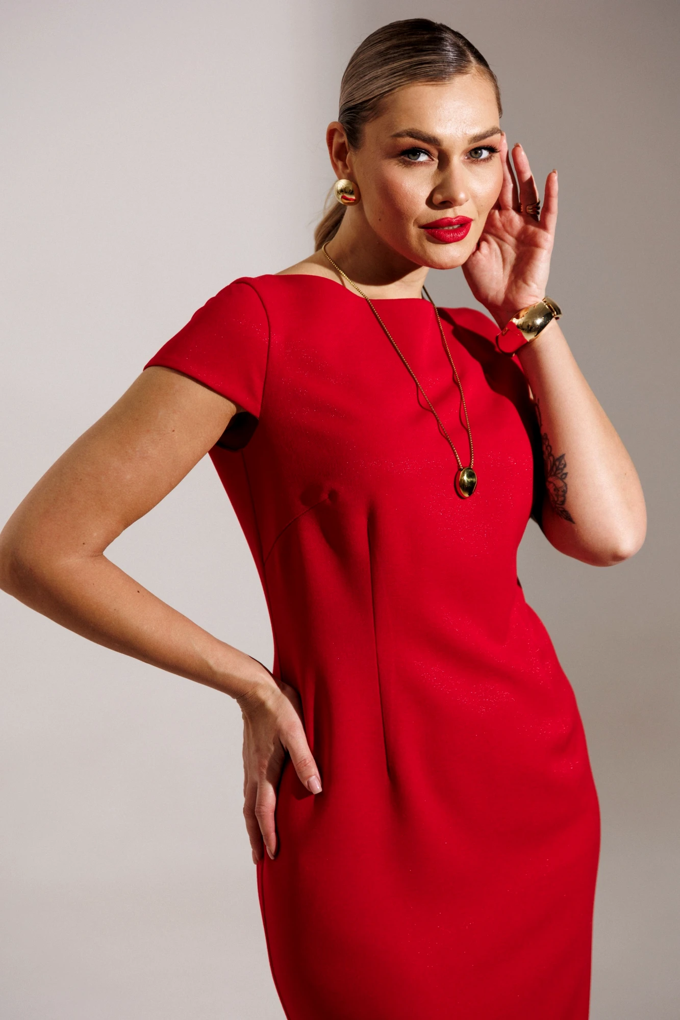 Нарядный комплект, состоящий из жакета и платья. Жакет - воплощение стильной трансформации. Его классический крой выполнен из безупречной трикотажной ткани, но в деталях скрывается своенравный характер. Жакет полуприлегающего силуэта. Модель отличается аккуратным кроем и стильными деталями. На передней части жакета обработаны вертикальные рельефы, идущие от проймы до уровня кармана и от кармана до низа, что придаёт силуэту выразительность и стройность. Воротник пиджачного типа добавляет классической элегантности. Застёжка центральная бортовая на петлю-пуговицу. Карманы в рамке с клапанами, гармонично расположены на передней части жакета. Спинка с центральным швом и вертикальными рельефами, идущими от проймы. Рукава двухшовные с отрезной деталью по окату и разрезами внизу добавляют свободы движению и делают модель более интересной. Жакет на подкладке. Платье женское приталенное из трикотажного полотна, длиной ниже колена. Рукава короткие - «крылышки». Вырез горловины спереди «лодочкой», сзади - V-образный. Платье приталено вытачками. В среднем шве спинки обработана шлица и потайная молния. Платье на подкладке.