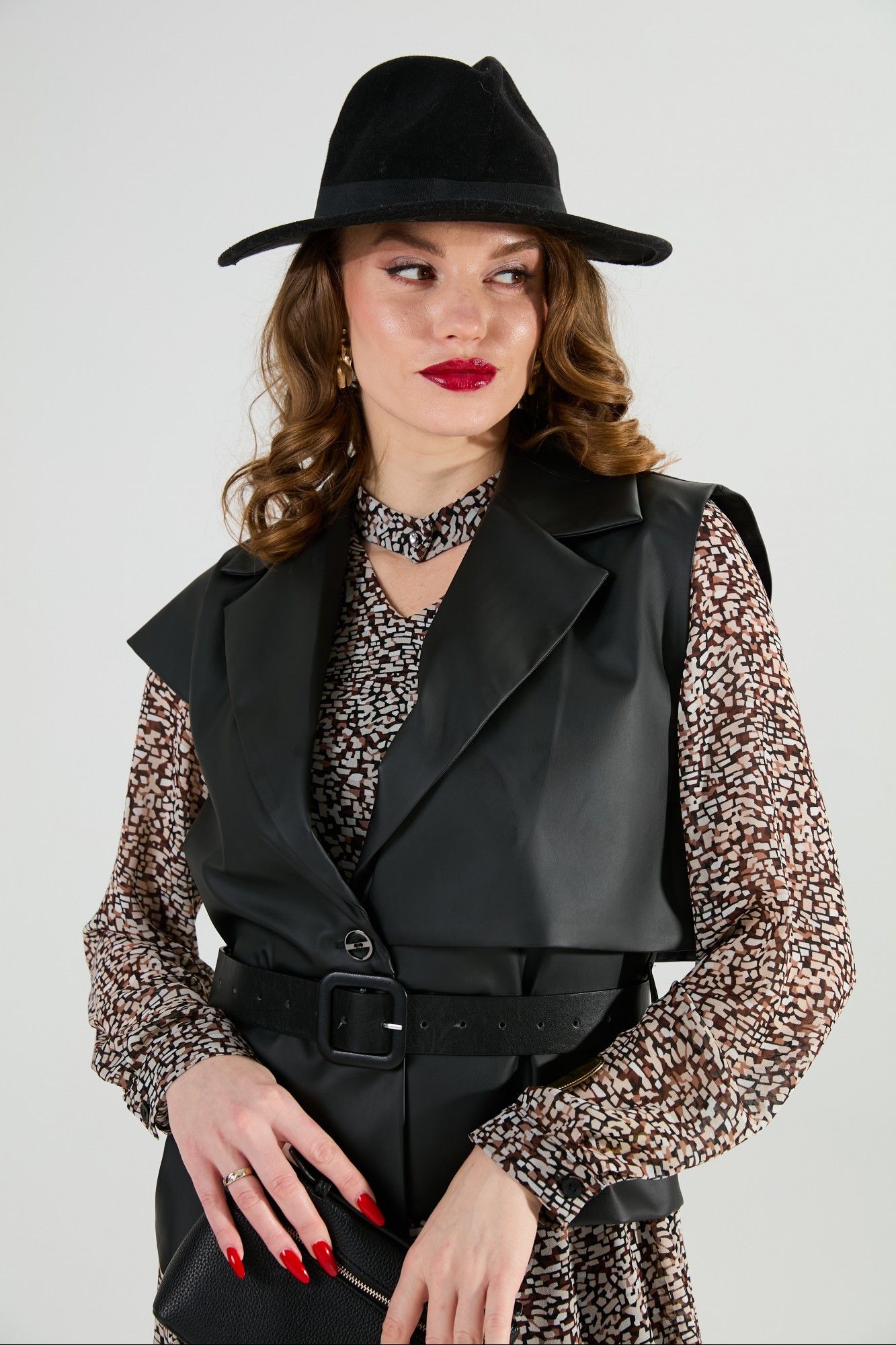 платье - 100% пэ, шифон, жилет - 96% пэ, 4% спандекс, экокожа