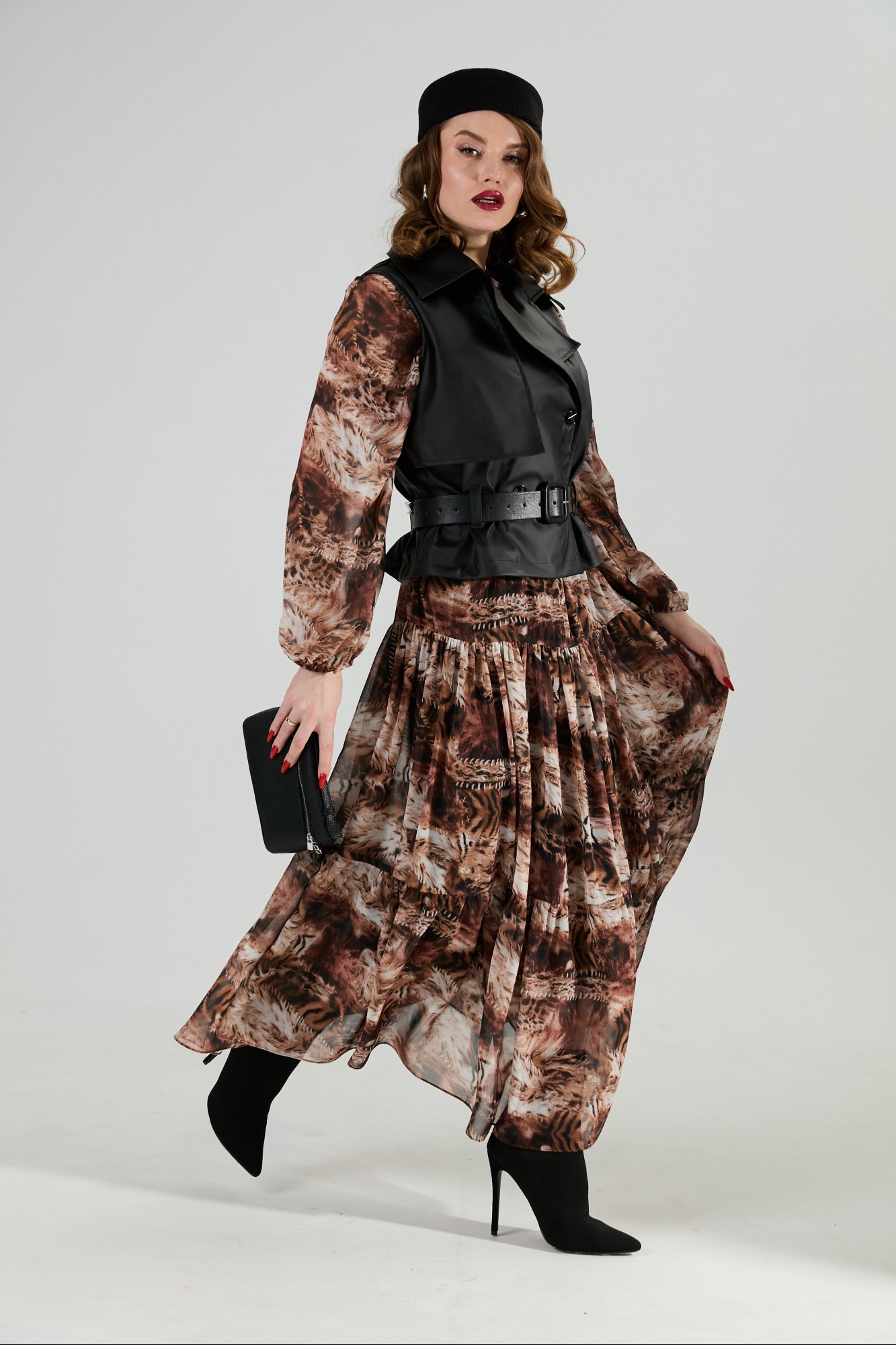 платье верхнее и нижнее - 100% пэ, шифон, жилет - 96% пэ, 4% спандекс, экокожа