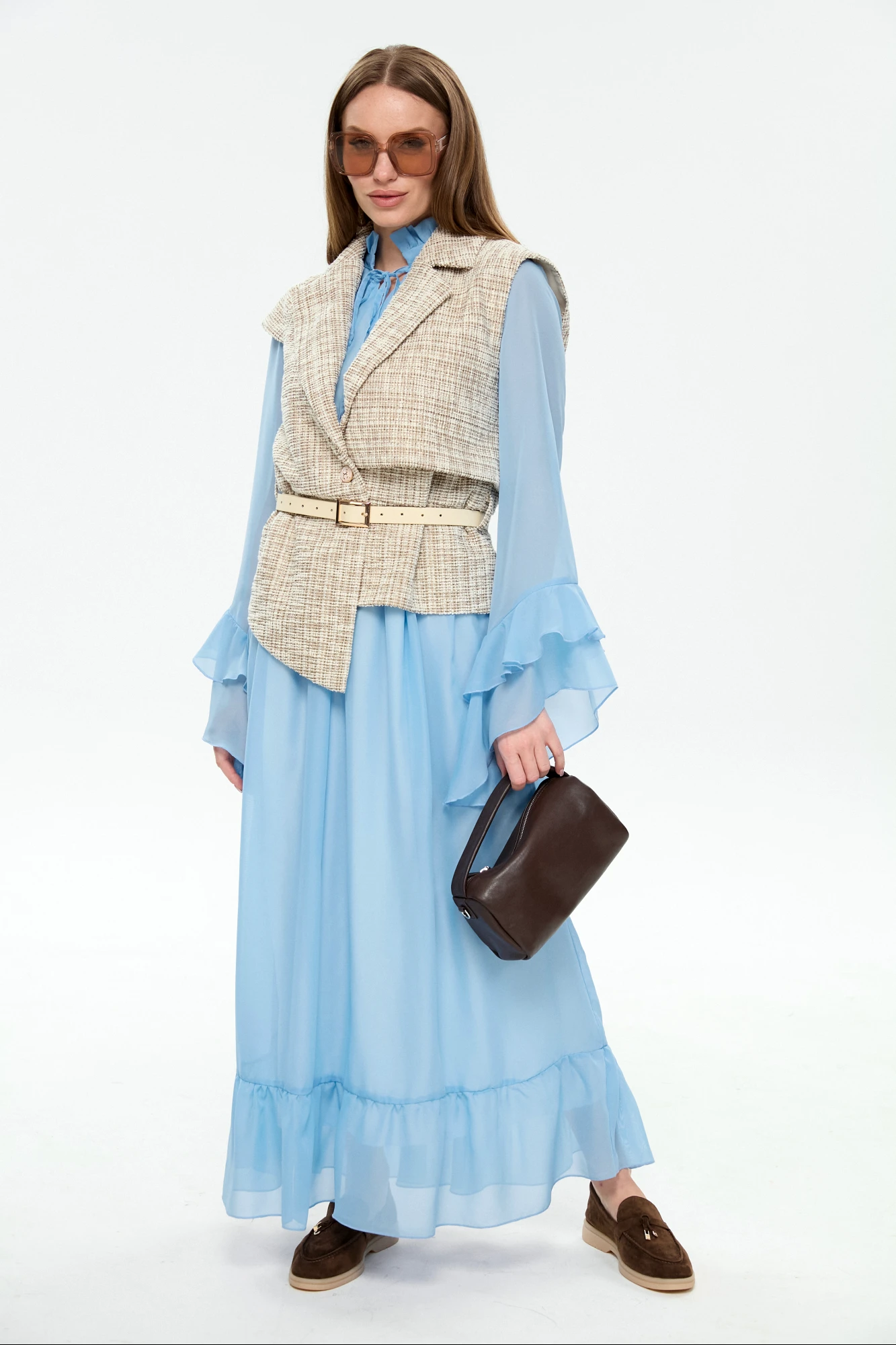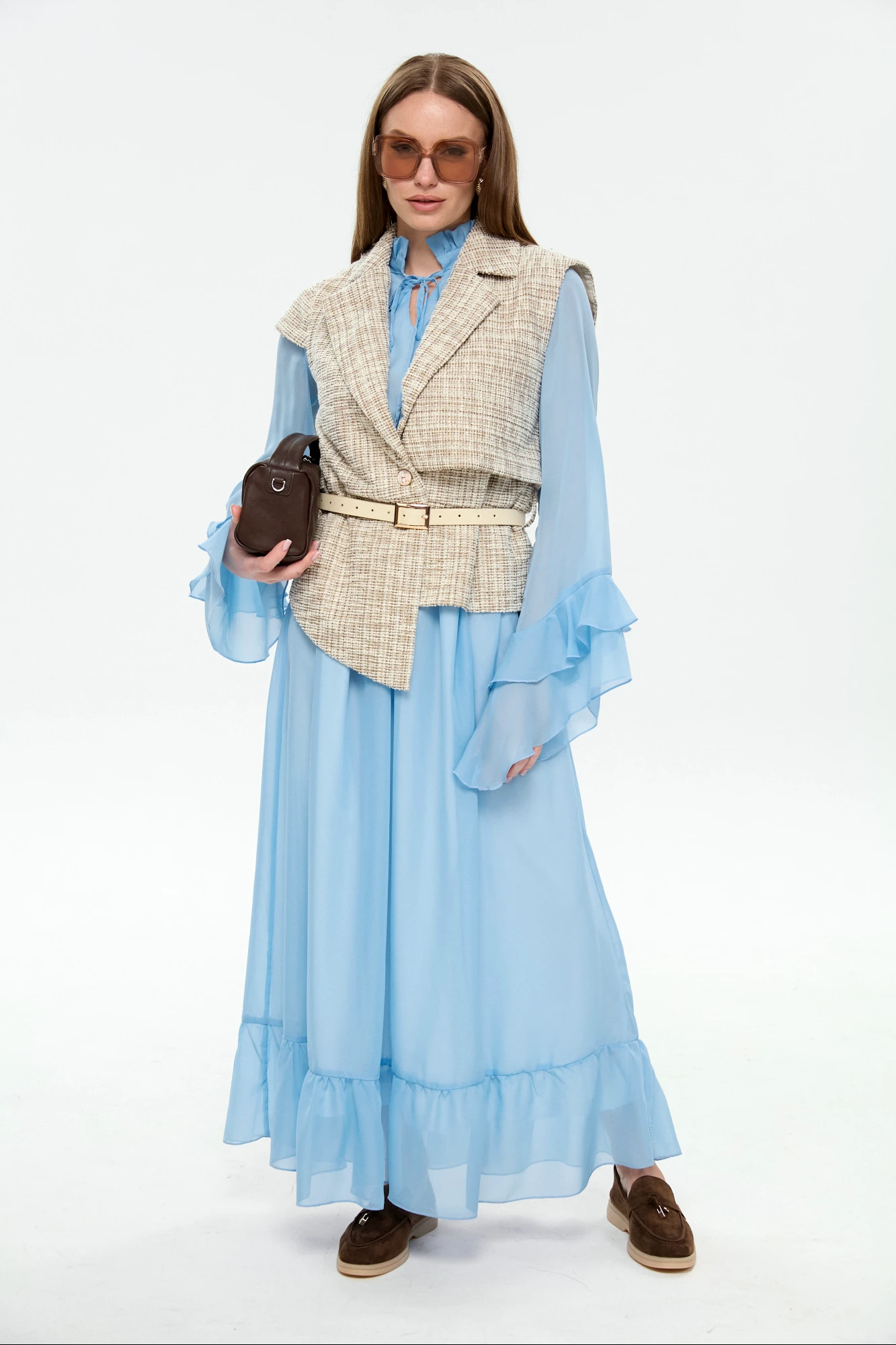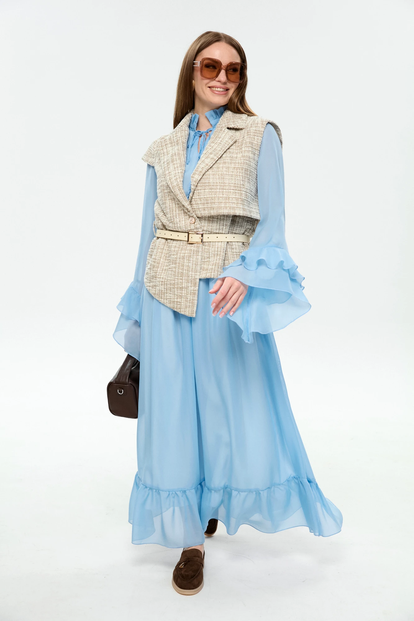 жилет - 64% хлопок, 34% пэ, 2% спандекс, платье - 100% пэ, шифон