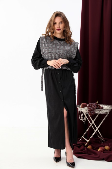 Костюм NikVa н942 двойка - 1 чёрный+серая клетка