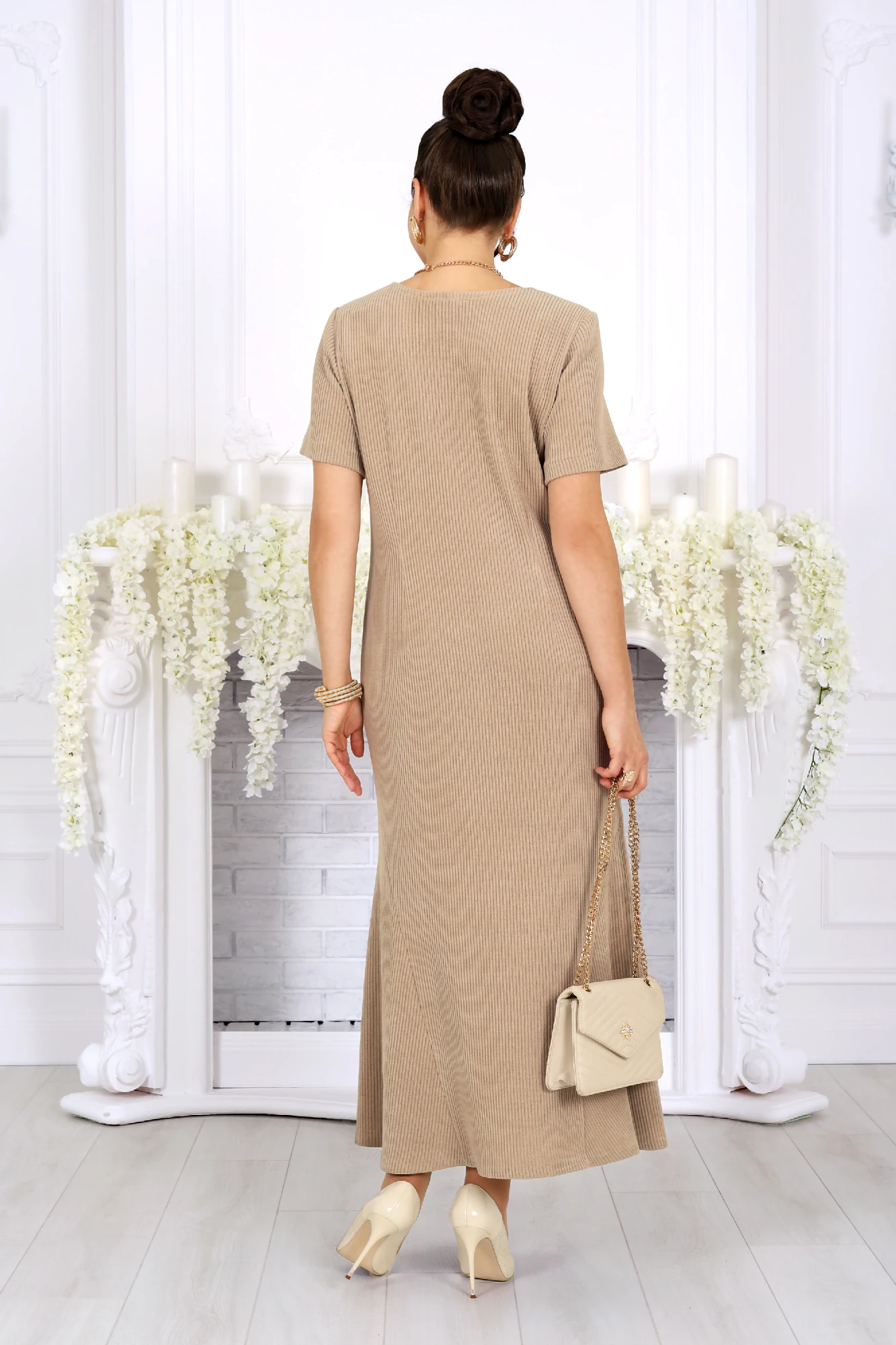 Практичный, стильный и по-настоящему универсальный костюм, который станет базой вашего гардероба и будет радовать не один сезон. Этот костюм создан для женщин, которые ценят комфорт, аккуратную посадку и продуманный дизайн. Фактурный трикотаж с рубчиком мягко ложится по фигуре, визуально вытягивает силуэт и не сковывает движений. Модель отлично подходит для женщин с формами и уверенно смотрится в больших размерах. Платье полуприлегающего силуэта красиво подчеркивает линии фигуры, а притачные клинья по бокам создают плавное расширение к низу, обеспечивая свободу шага и женственный силуэт. Удобная длина делает образ уместным как для деловой обстановки, так и для прогулок или встреч. Свободный джемпер добавляет образу уюта и многослойности: его можно носить поверх платья или отдельно. Разрезы по бокам, мягкая горловина и манжеты с вырезом для большого пальца создают современный, продуманный образ. Съемный декоративный цветок позволяет менять настроение комплекта — от лаконичного до более нарядного.