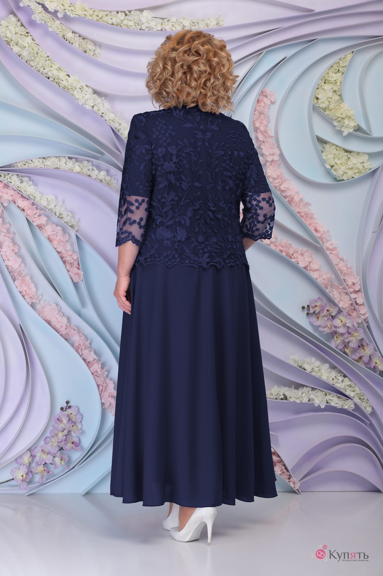Комплект женский состоящий из платья и блузки. Платье полуприлегающего силуэта, отрезное по линии талии, со вставкой в виде пояса. Длина по среднему шву спинки 140,0 см. Юбка, расширенная к низу, на подкладке из дышащей, приятной на ощупь и достаточно эластичной ткани. Деталь переда двухслойная, нижняя часть из основной ткани, верхняя часть из кружева. Нагрудные выточки выходят из проймы. Спинка с талевыми выточками и со средним швом, в котором обработана застёжка на потайную тесьму молнию. Горловина обтачная, спереди углублённая. Рукава втачные, одношовные, длиной 29,0 см. Изделия с плечевыми накладками.