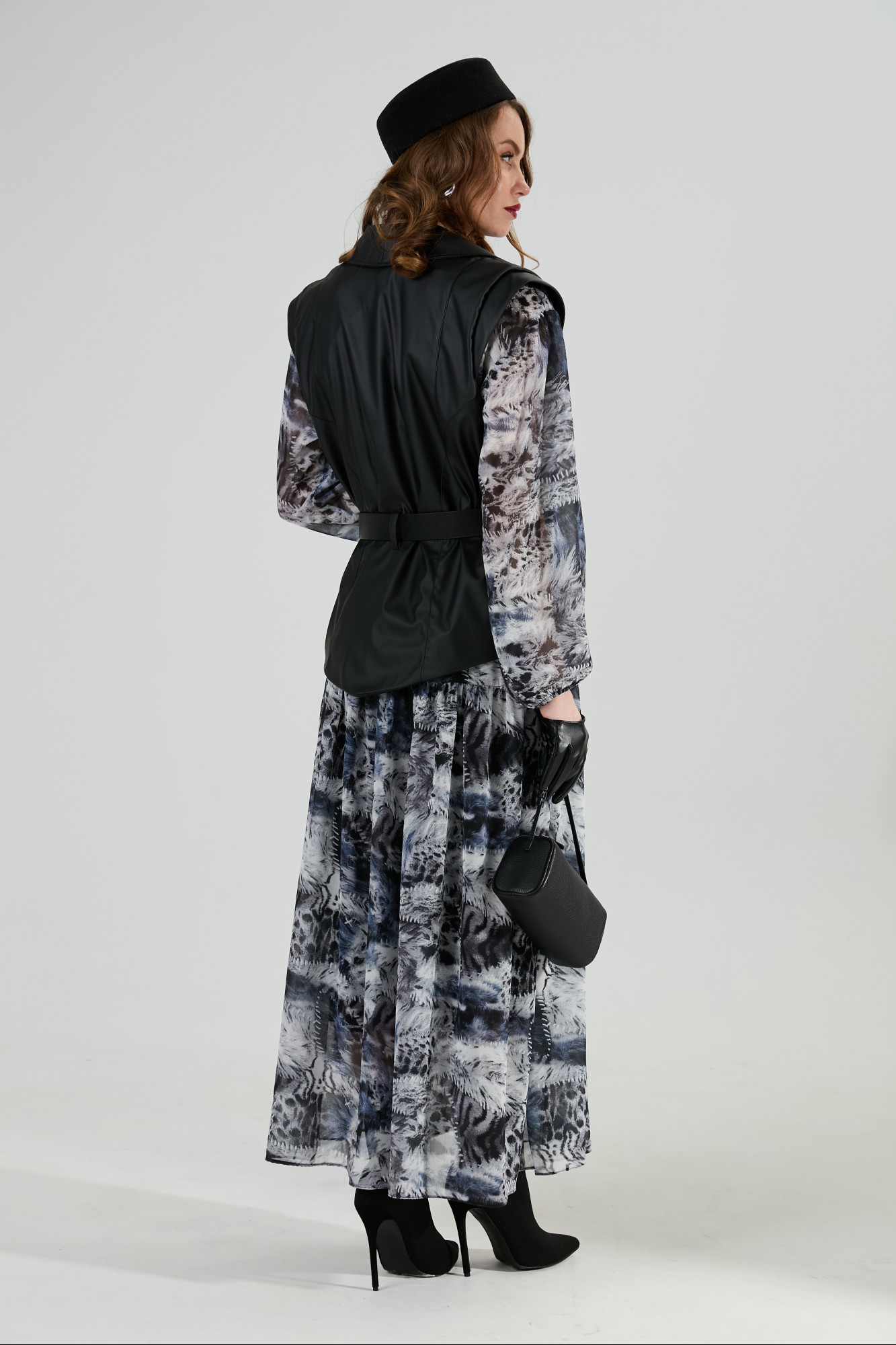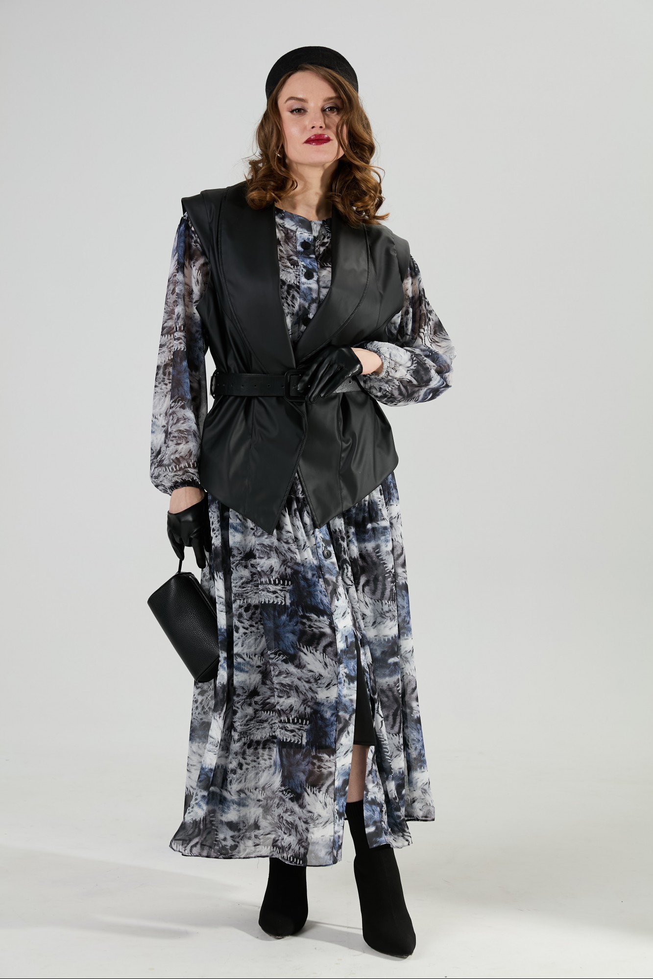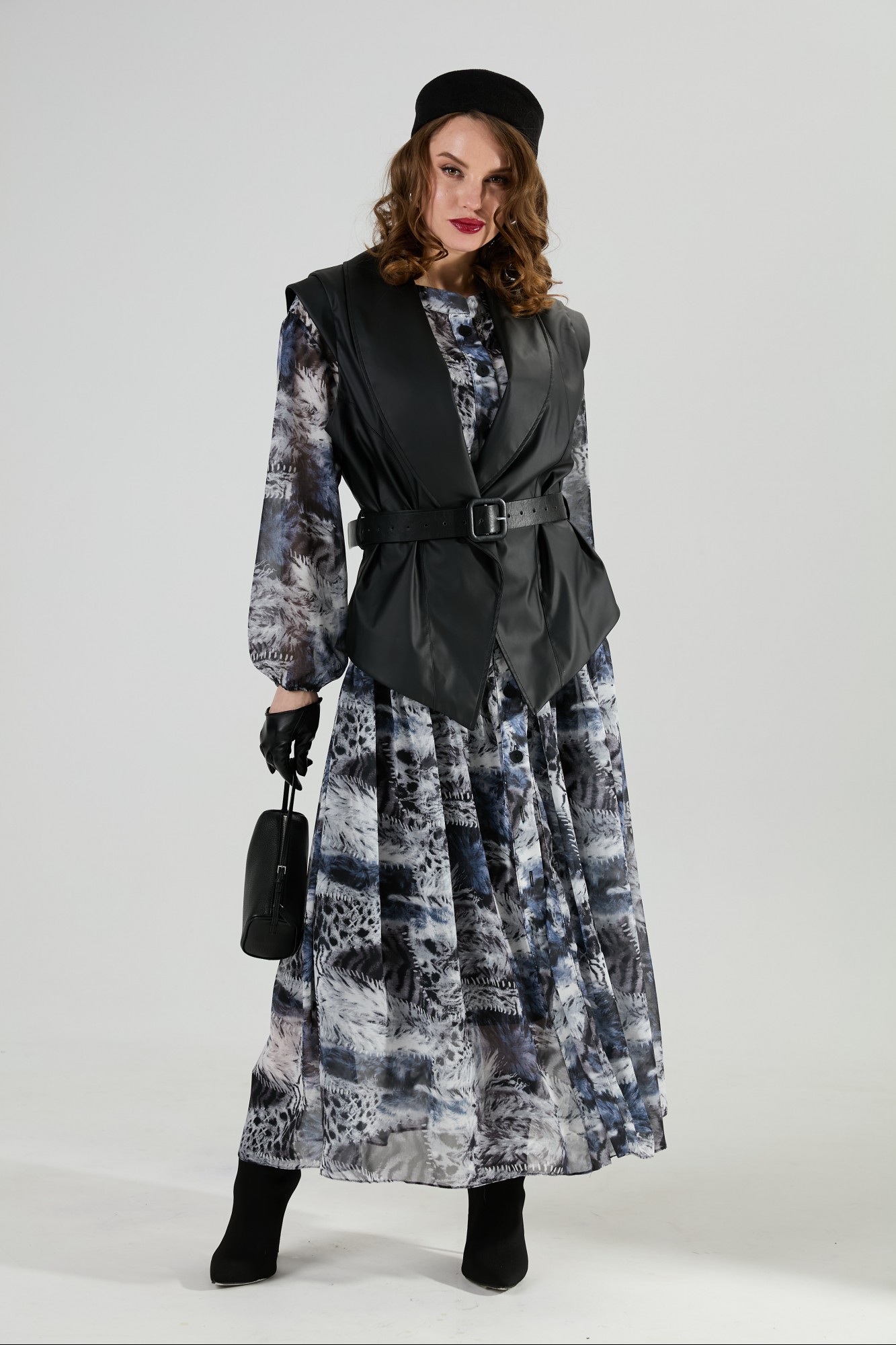 платье верхнее и нижнее - 100% пэ, шифон, жилет - 96% пэ, 4% спандекс, экокожа