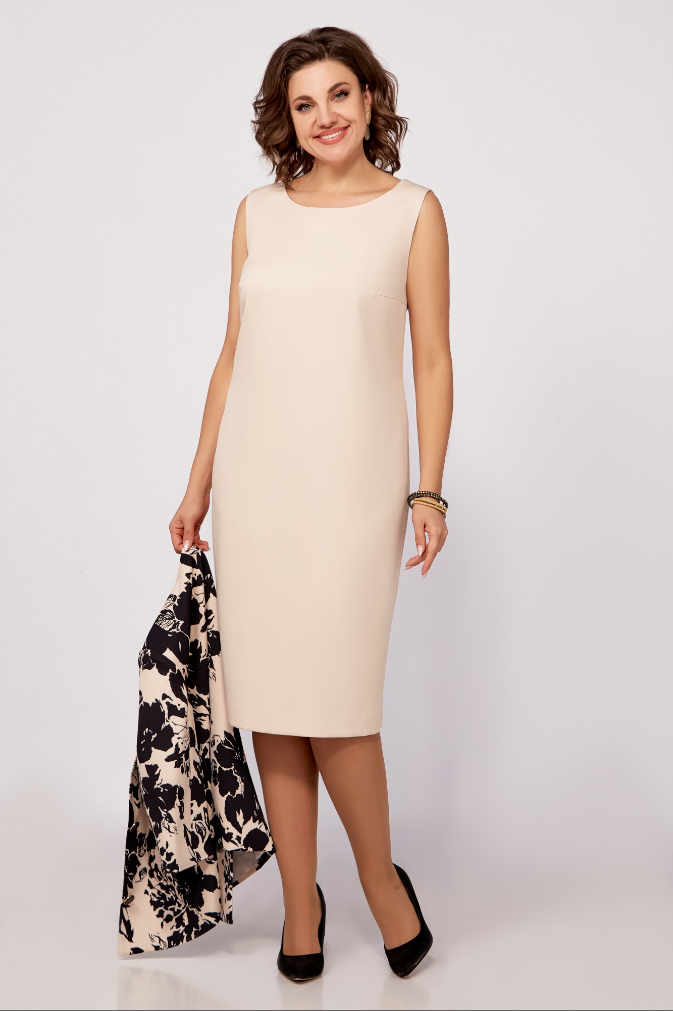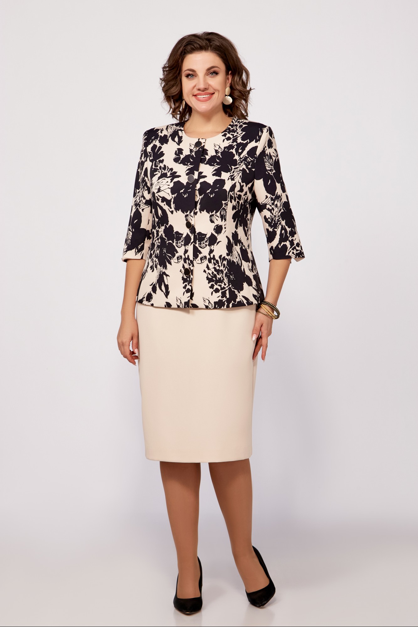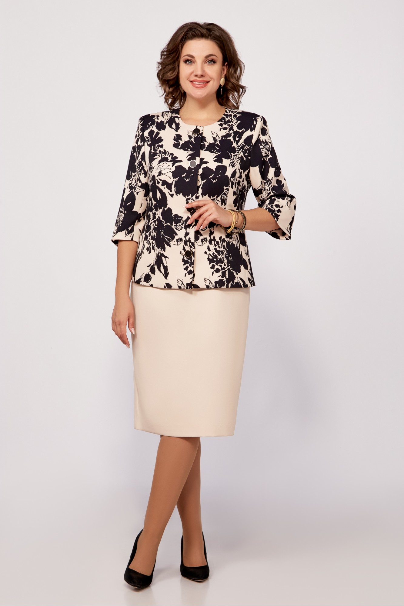 Костюм Swallow 797 Бежевый, принт чёрные цветы