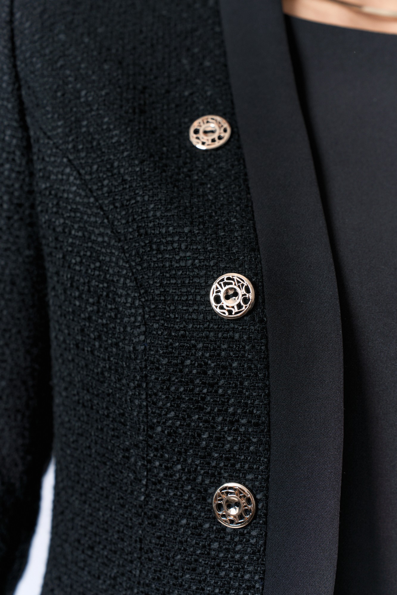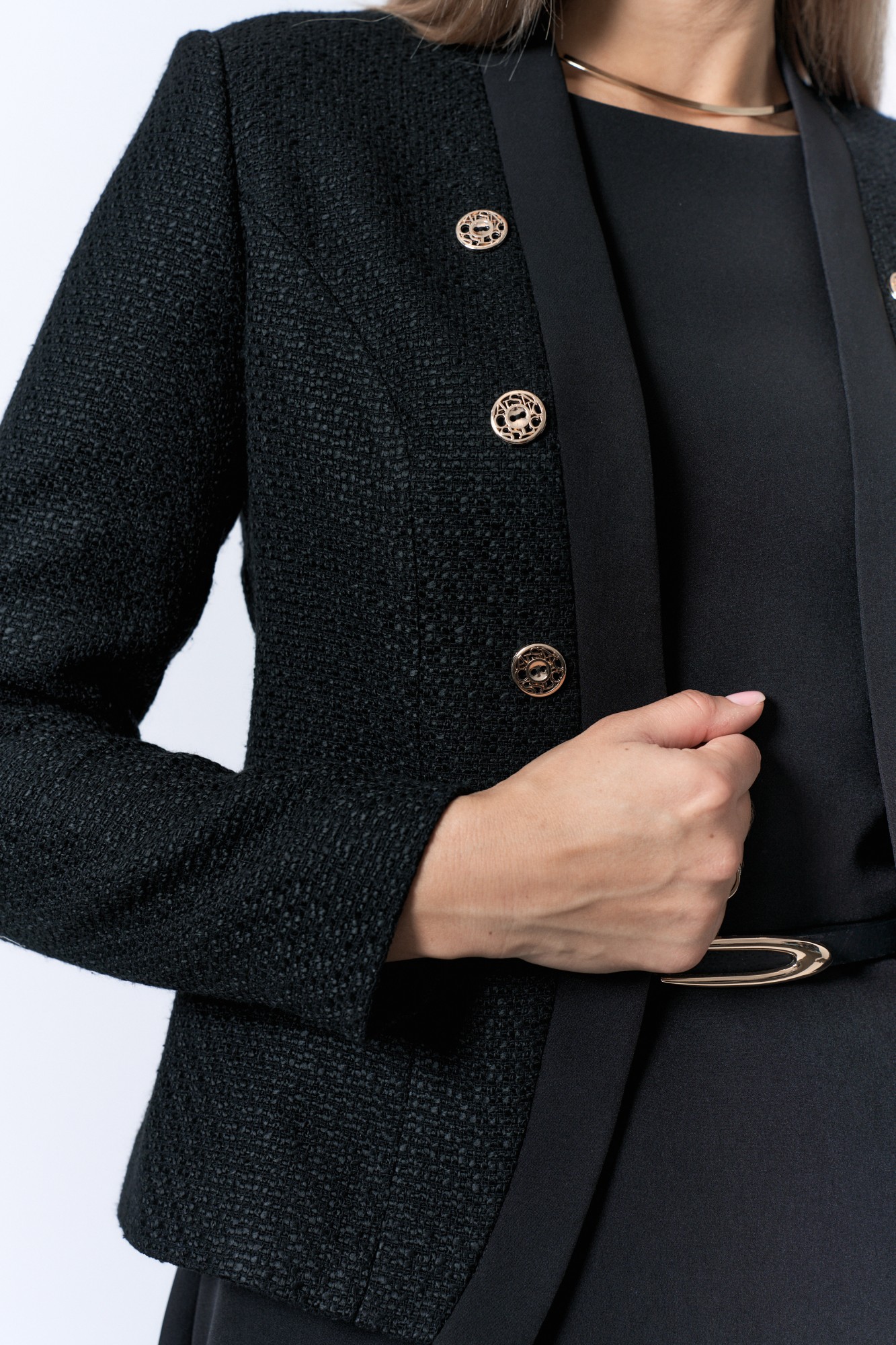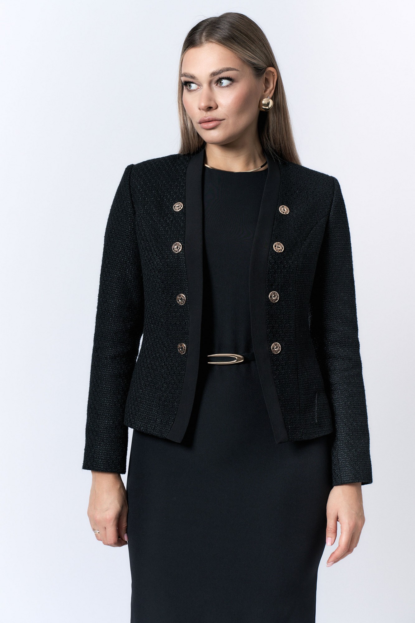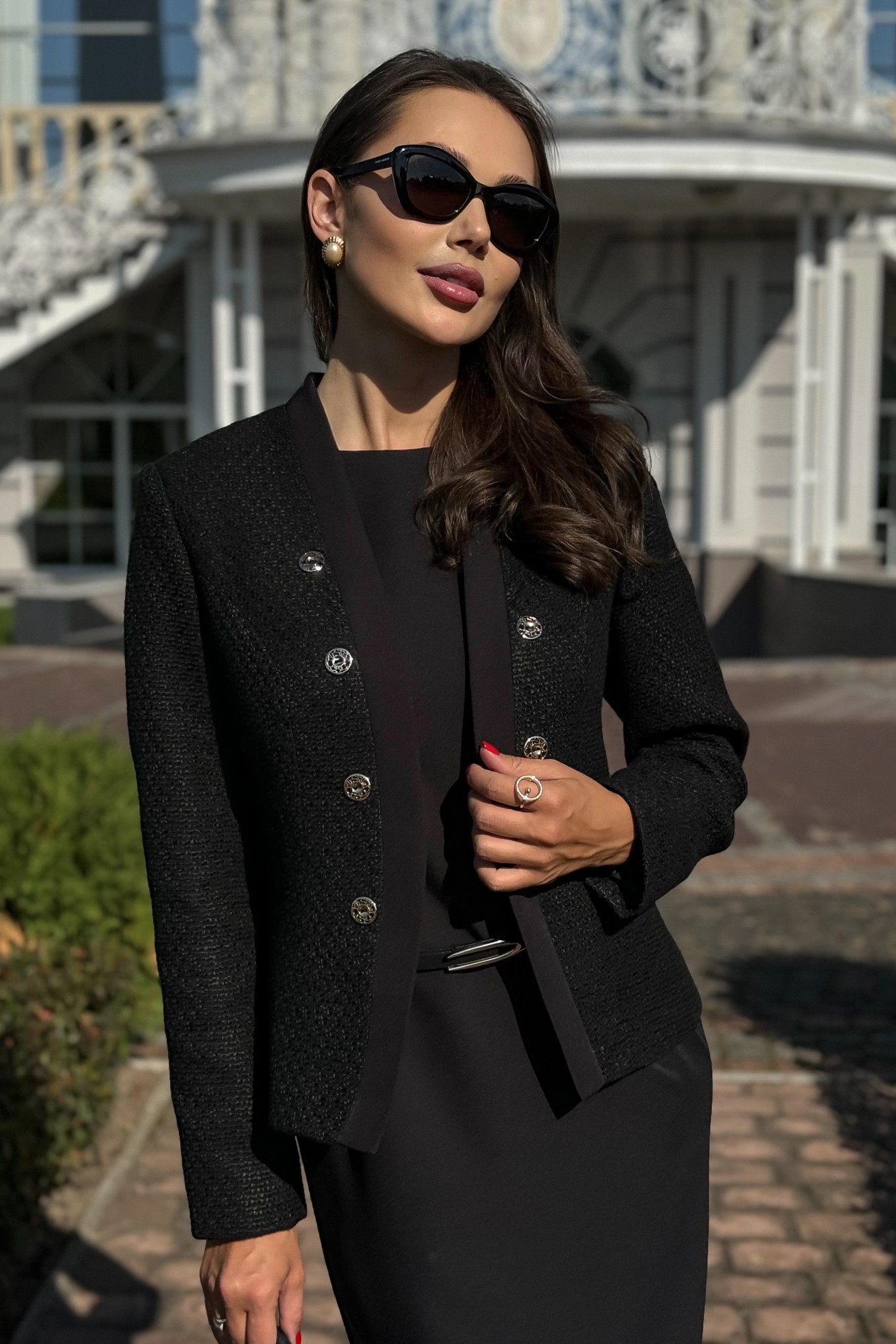 платье: полиэстер - 79%, вискоза 12%, спандекс - 9%. Состав жакета: акрил - 50%,полиэстер - 29%, вискоза - 21%.