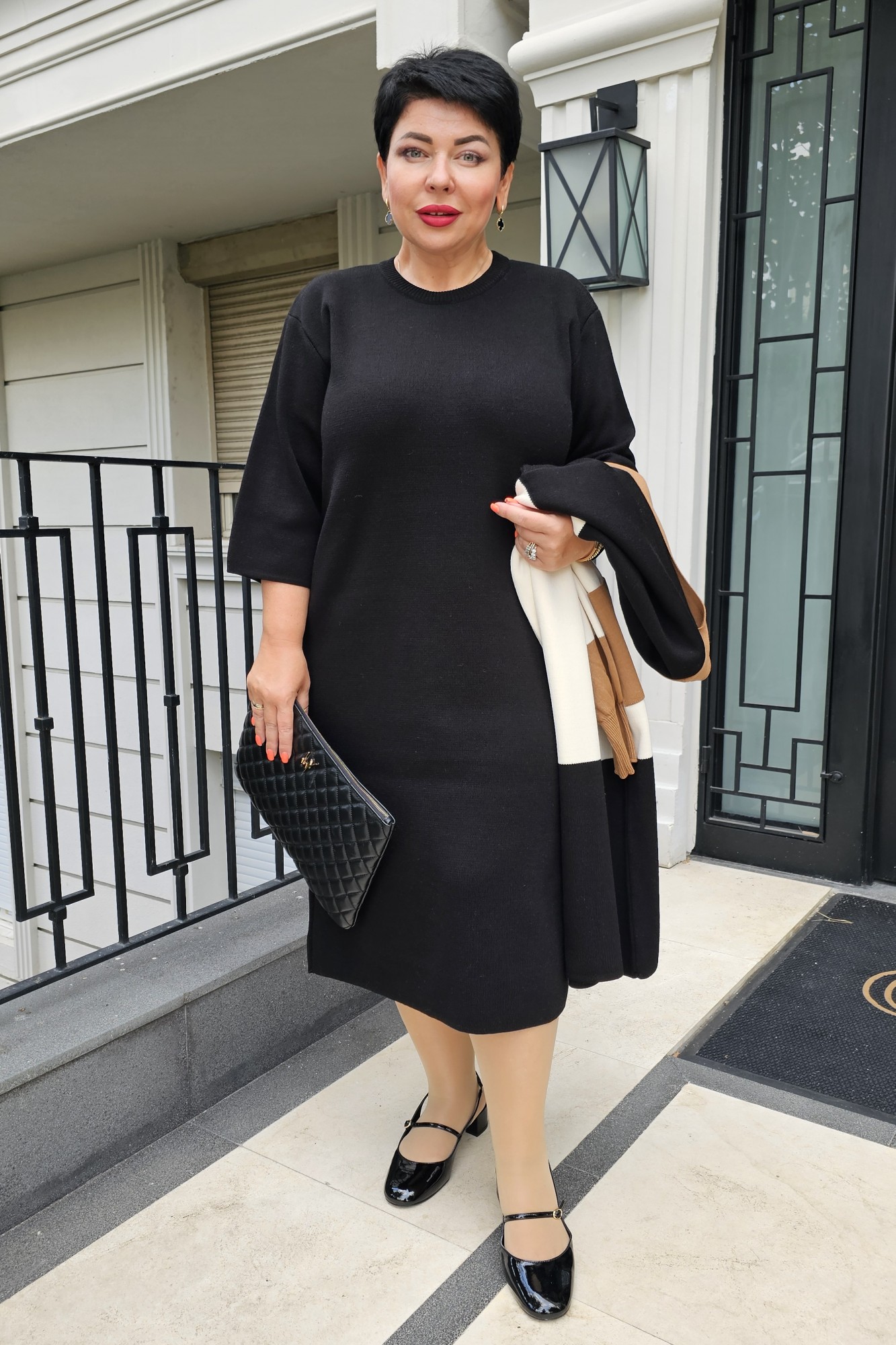 Длина спинки кардигана 99 см - 52 размер, 100 см - 54 р., 101 см - 56 р. Длина рукава кардигана 44 см. Длина спинки платья 108 см. Длина рукава платья 37 см.