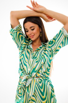 Рубашка имеет привлекательную яркую расцветку, которая напоминает сочные цвета лета. Она добавит игривости и свежести в образ. Важной особенностью этой рубашки являются рукава на пате, которые можно зафиксировать, сделав их короче. Это позволит тебе настроить длину рукавов в соответствии с твоим предпочтением.